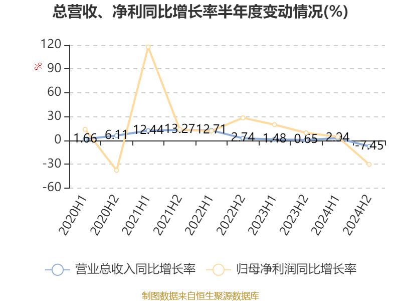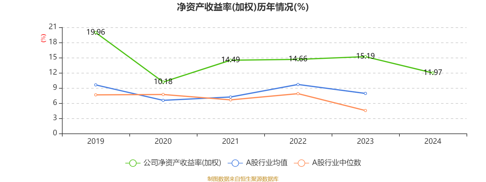 数据显示,2024年公司加权平均净资产收益率为11.97%,较上年同期下降3.22个百分点。