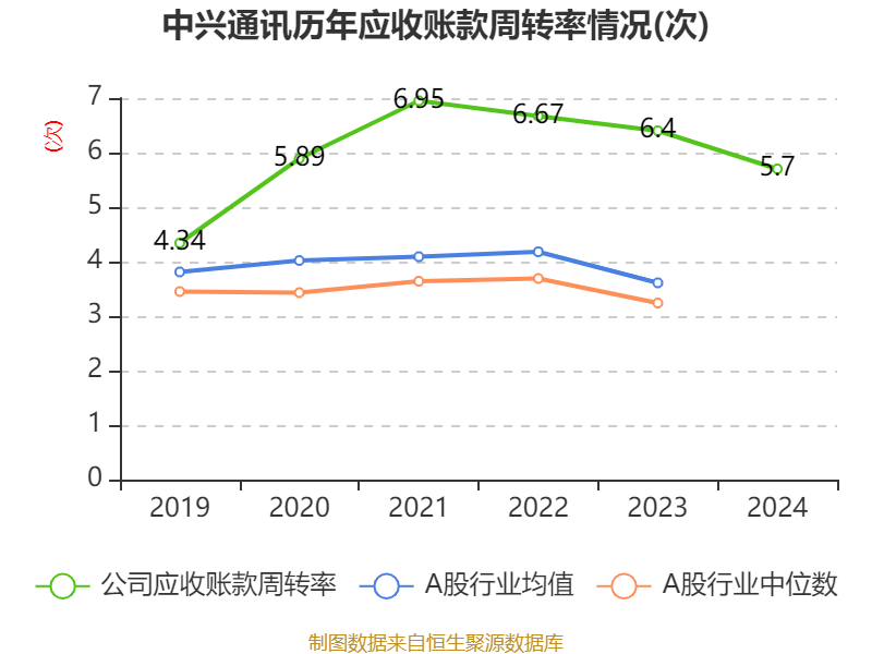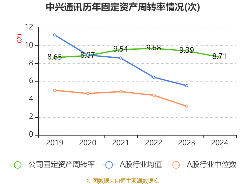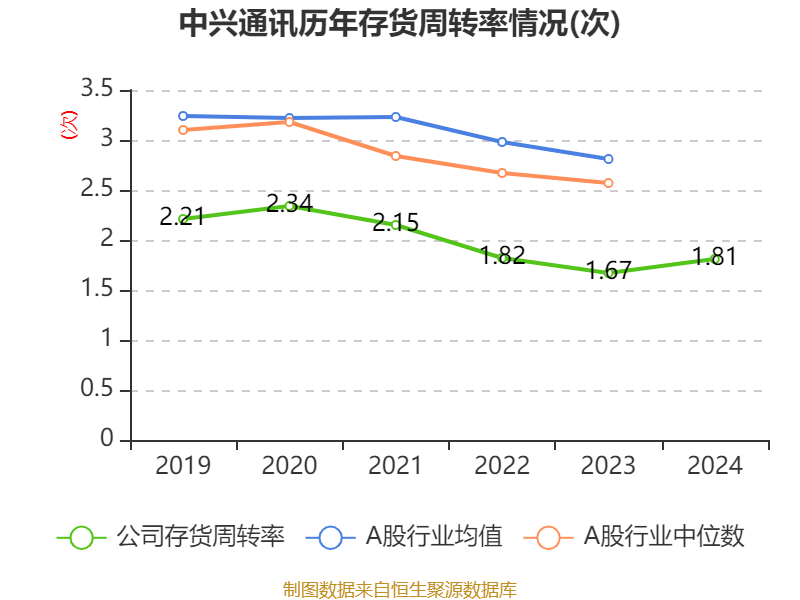 中兴通讯(00763)3月6日披露2024年度报告。报告期内,公司实现营业总收入1212.99亿元,同比下降2.38%;归母净利润84.25亿元,同比下降9.66%;经营活动产生的现金流量净额为114.8亿元,同比下降34.05%;据报告显示,中兴通讯基本每股收益为1.76元,加权平均净资产收益率为11.84%。公司2024年分配预案为:每股派息0.617人民币。