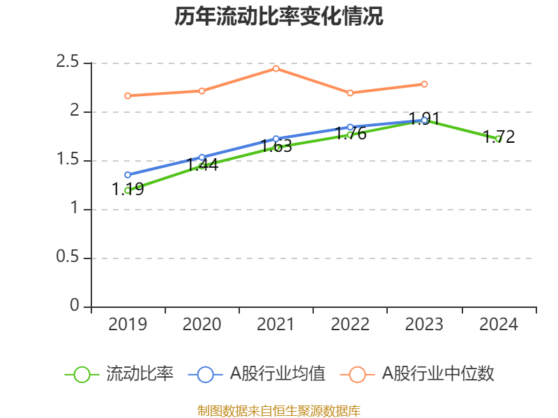 2024年,公司流动比率为1.72,速动比率为1.22。