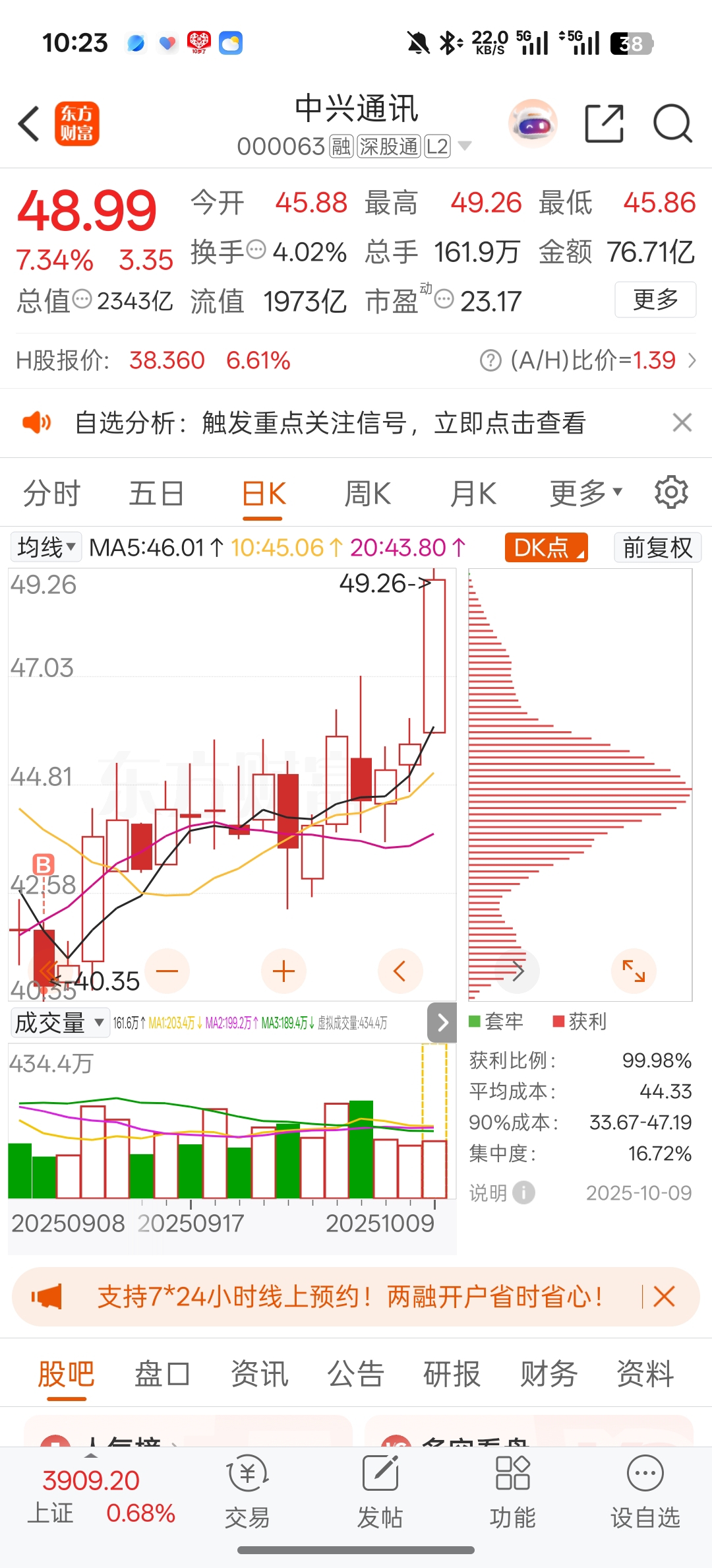 $中兴通讯(SZ000063)$ 买完就不要动,长线股不一样的操作,再说一次,下跌过程拿不住,上涨过程同样拿不住。
