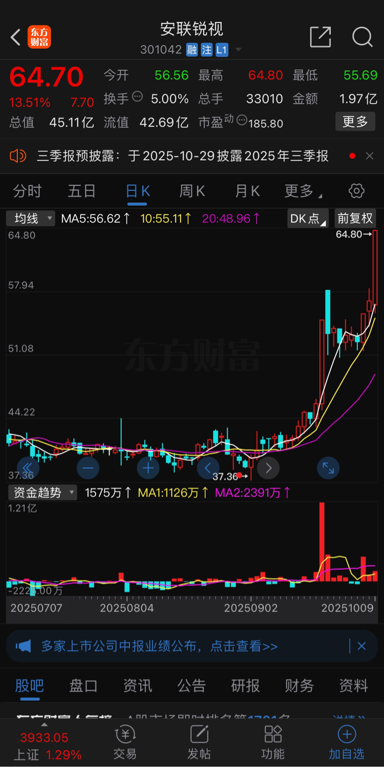 安联锐视 301042我在9/24号共享低吸机会,随后一波流畅上升出现,今天大涨10几个点强不强各位说了算,有没有把握住机会的朋友,恭喜了