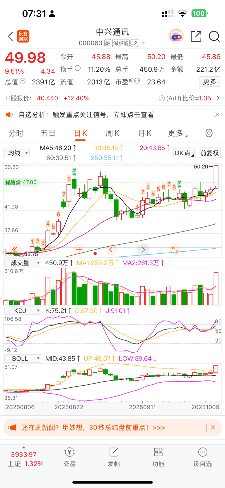 $中兴通讯(SZ000063)$ 大阳强势突破前高,所谓烂版出妖,中兴今年涨幅不大,继续看多大概率走的是趋势