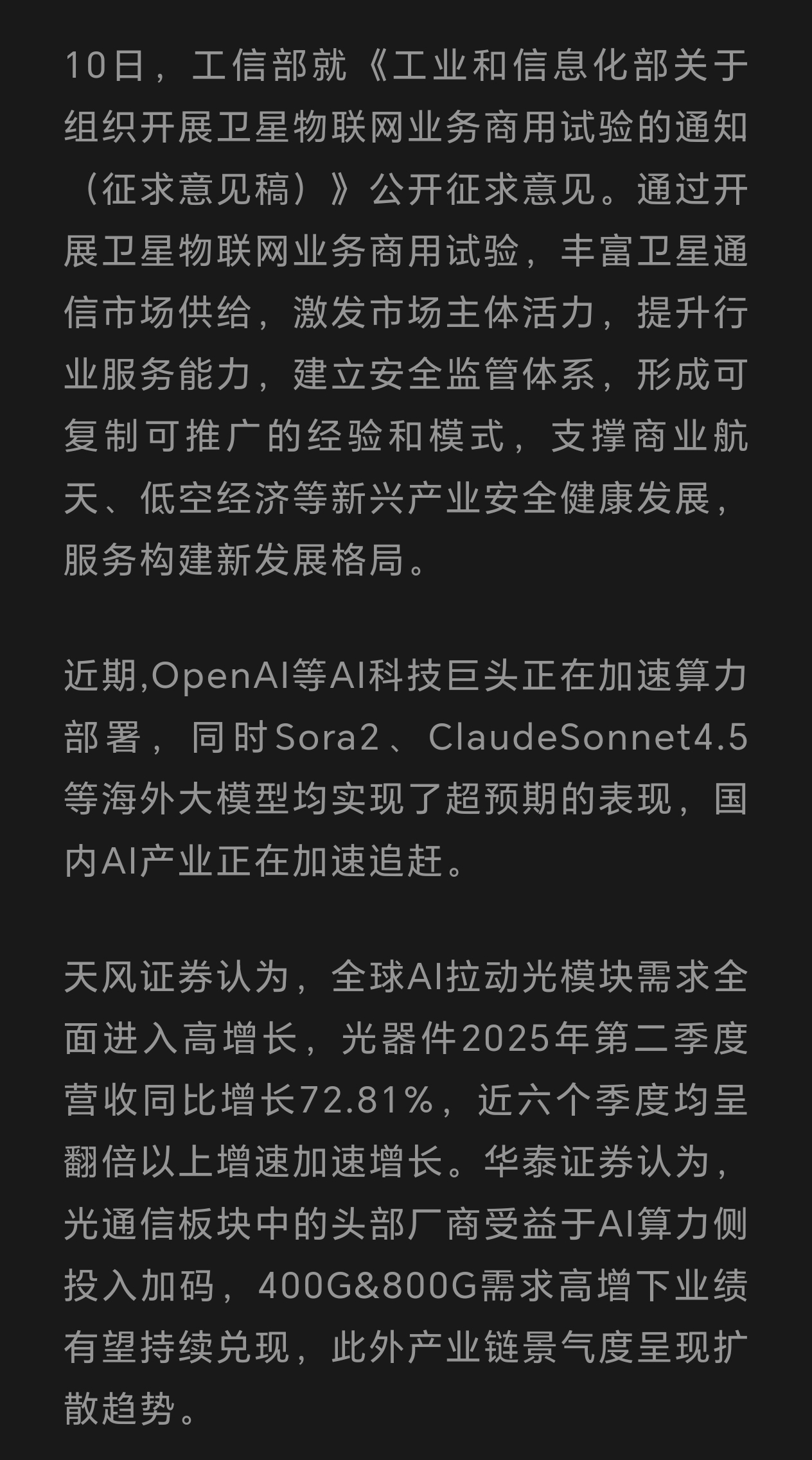 $中兴通讯(SZ000063)$ 光通信板块中的头部厂商受益于AI算力侧投入加码,400G&800G需求高增下业绩有望持续兑现,此外产业链景气度呈现扩散趋势。