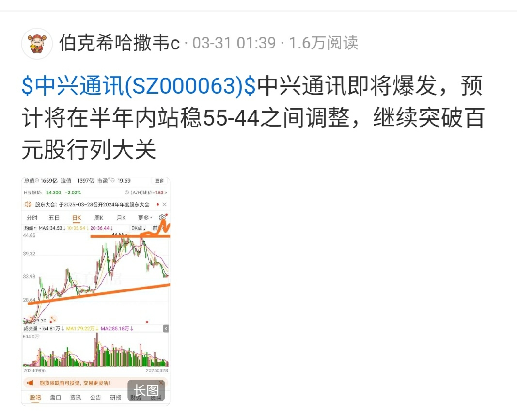 2025年3月预计中兴通讯55,很坚定!准吧