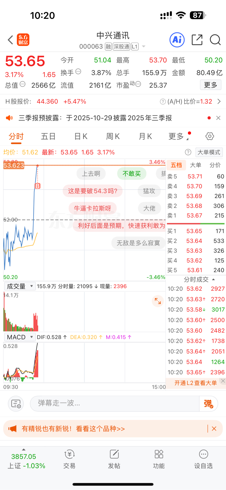 $中兴通讯(SZ000063)$ 我来助你