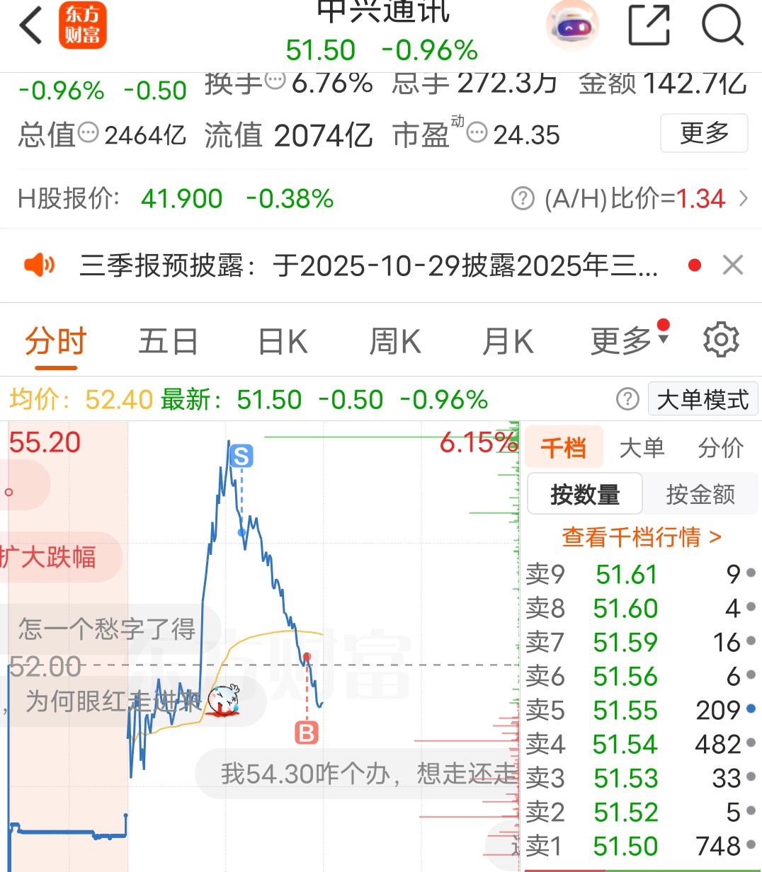 $中兴通讯(SZ000063)$ 卖了一半做个T,没有想到还能跌绿,真服了
