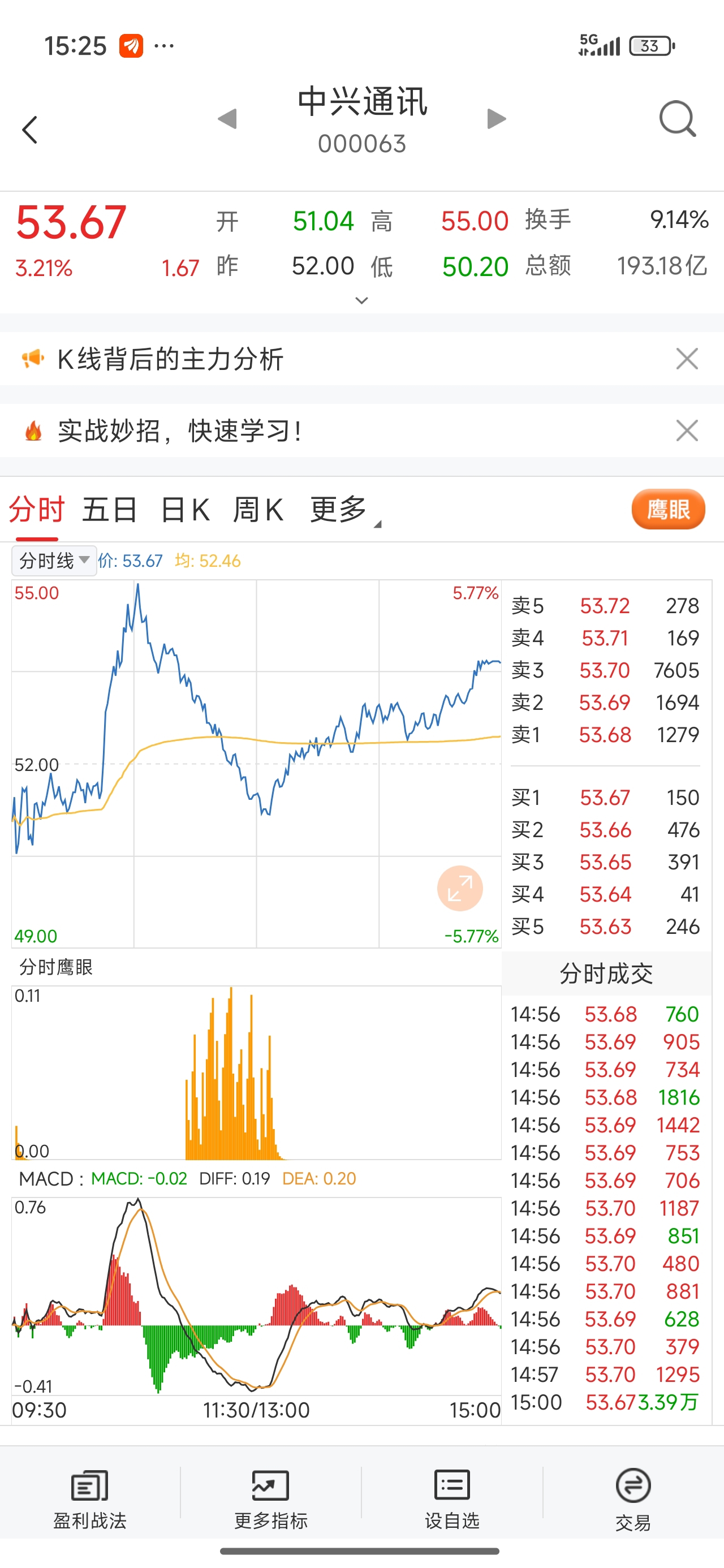 $中兴通讯(SZ000063)$ 今天有资金低位进场