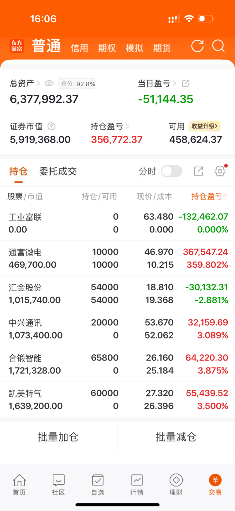 午盘操作:止损工业富联调仓中兴通讯!通富微电午盘强势翻红,早盘低位出了3/2没操