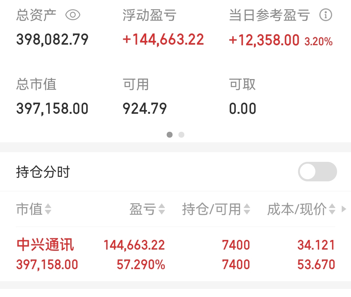 $中兴通讯(SZ000063)$ 这个成本,还能拿多久?