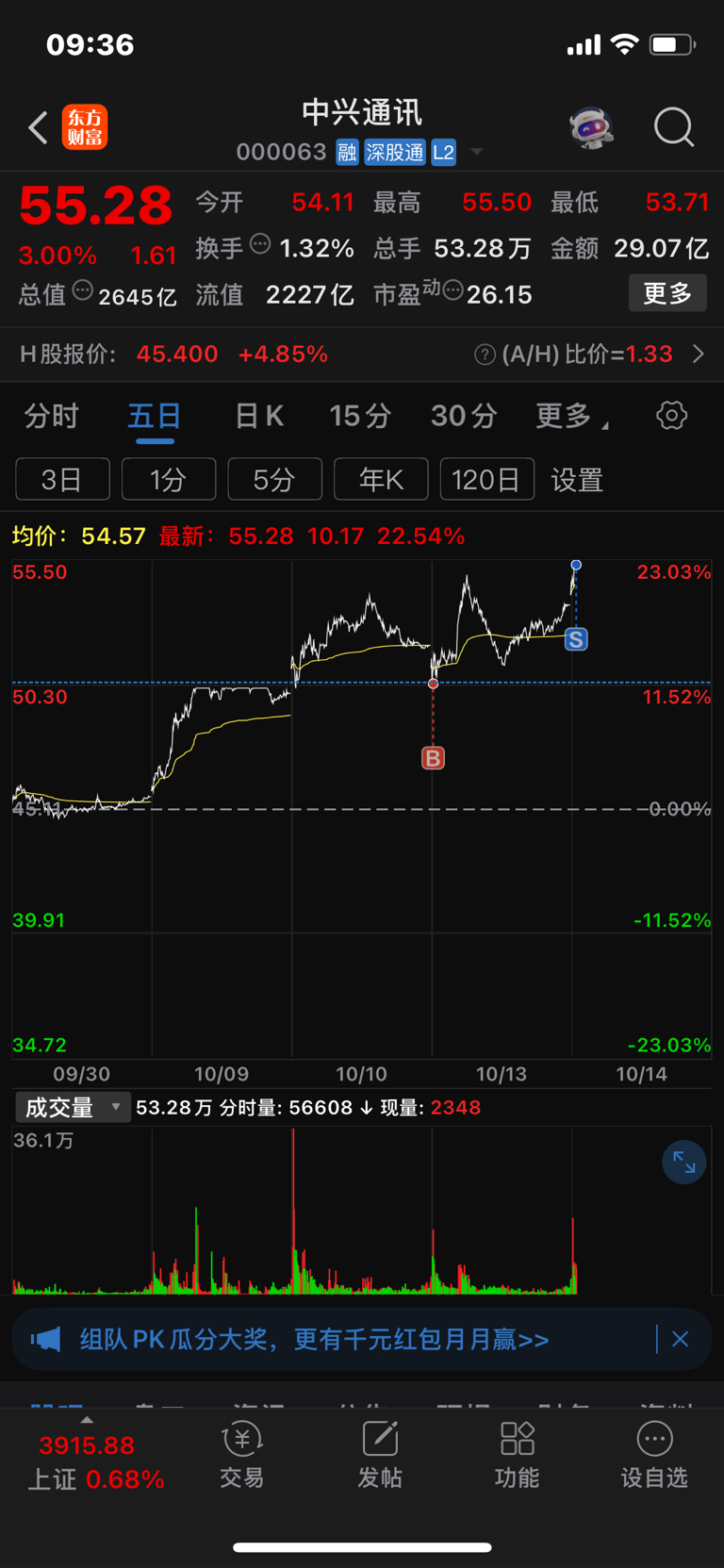 $中兴通讯(SZ000063)$ 见好就收