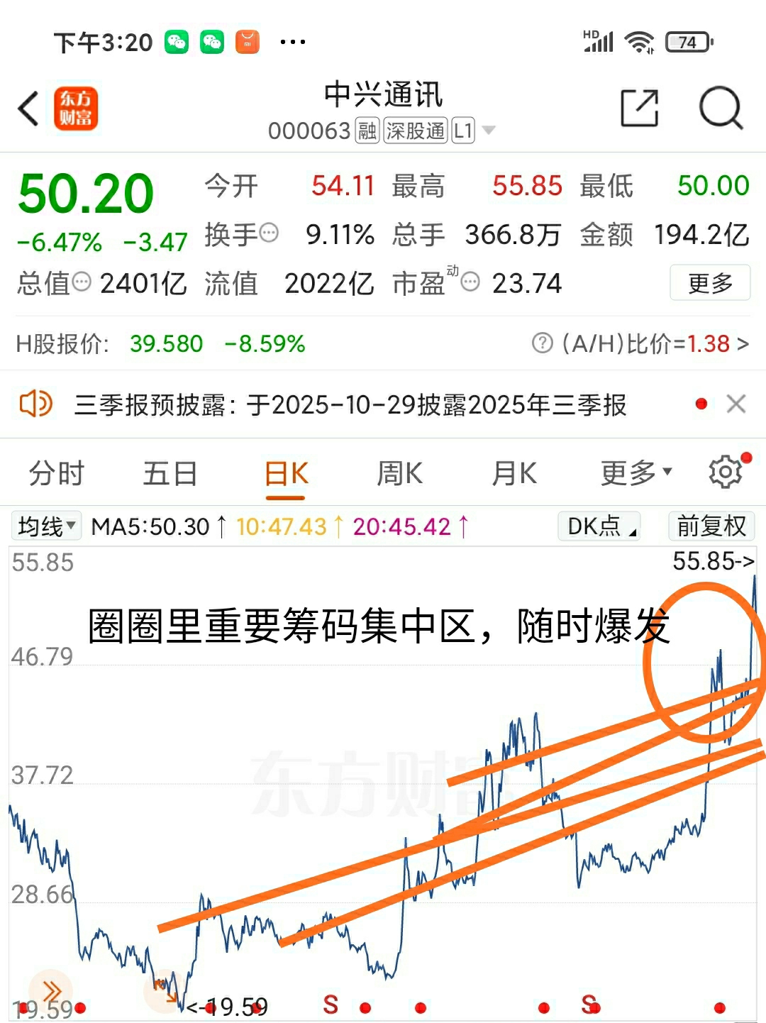 暴跌洗盘法,让散户出局,大资金买入所有关键支撑线都在55-44之间,大资金要开始