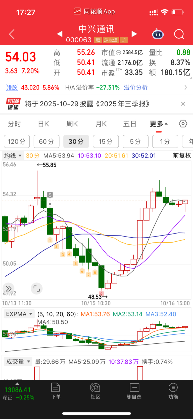 $中兴通讯(SZ000063)$ 53终究是卖飞了.想着47.9能接回来.没想到就差一点啊.就跟建工爷叔一样就差一点决定了我的一生