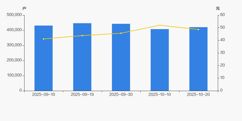 截至2025年10月20日,公司最新A股总股本为47.84亿股,其中流通股本为40.27亿股。户均持有流通股数量由上期的9883股下降至9578股,户均流通市值46.55万元。