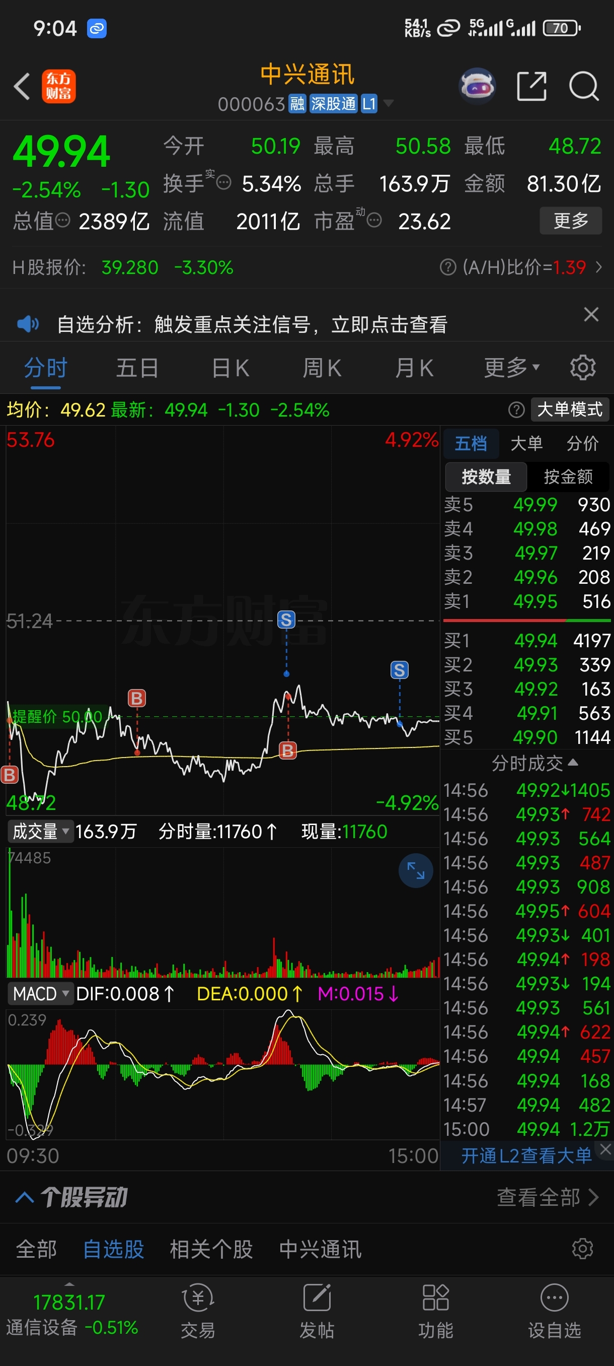 $中兴通讯(SZ000063)$ 同样的成交量为啥工业富联的换手率那么高