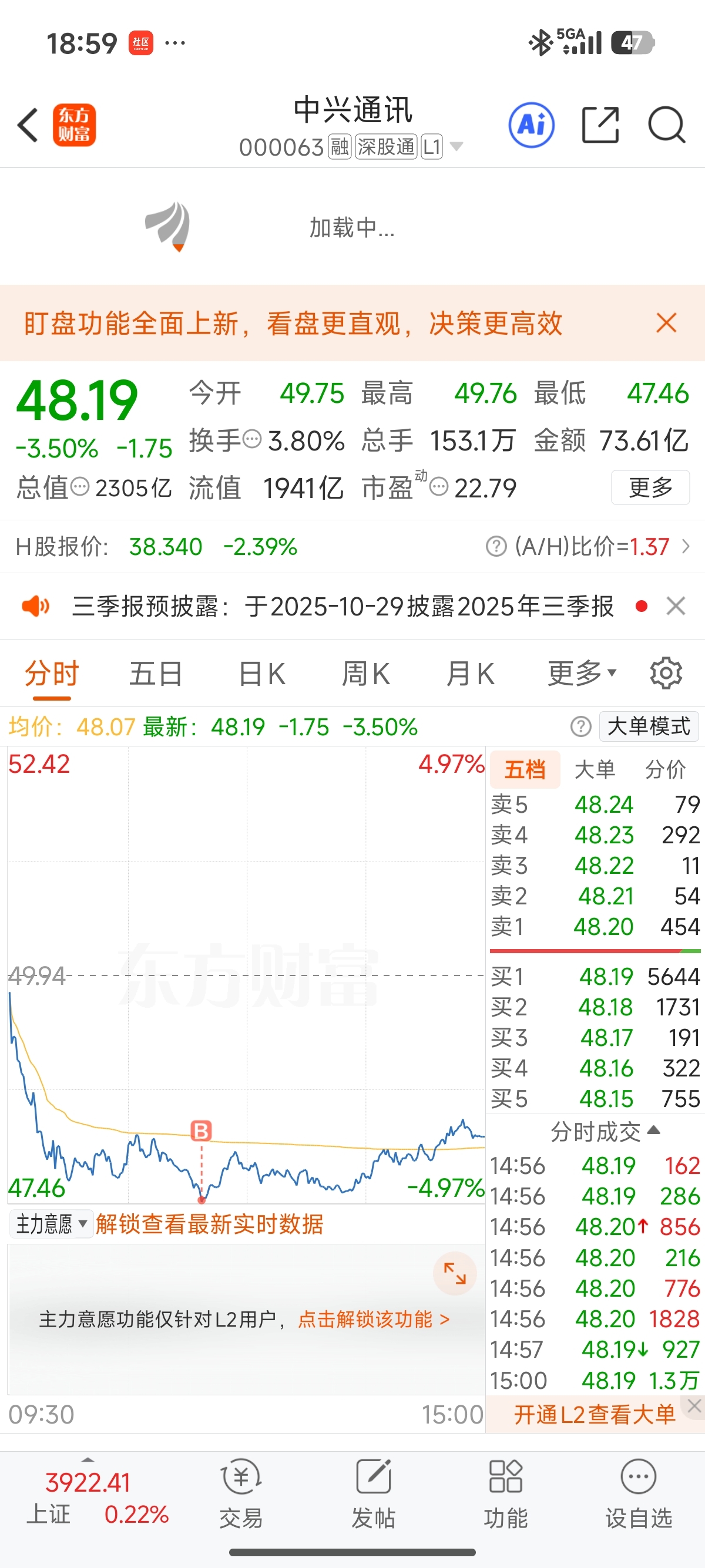 $中兴通讯(SZ000063)$ 47.5买入,看看明天能不能涨点上50。