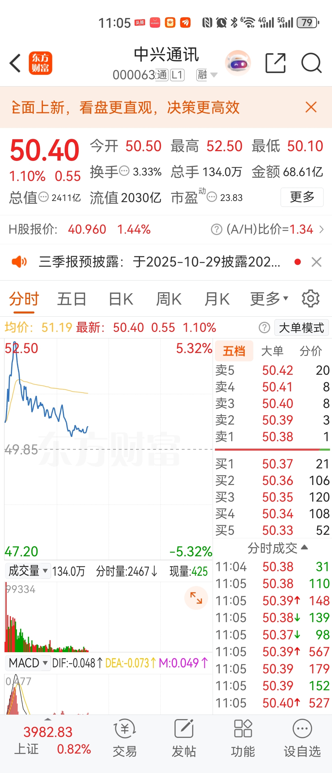 $中兴通讯(SZ000063)$ 扶老夫起来,这样的盘面,我感觉我能射涨停!
