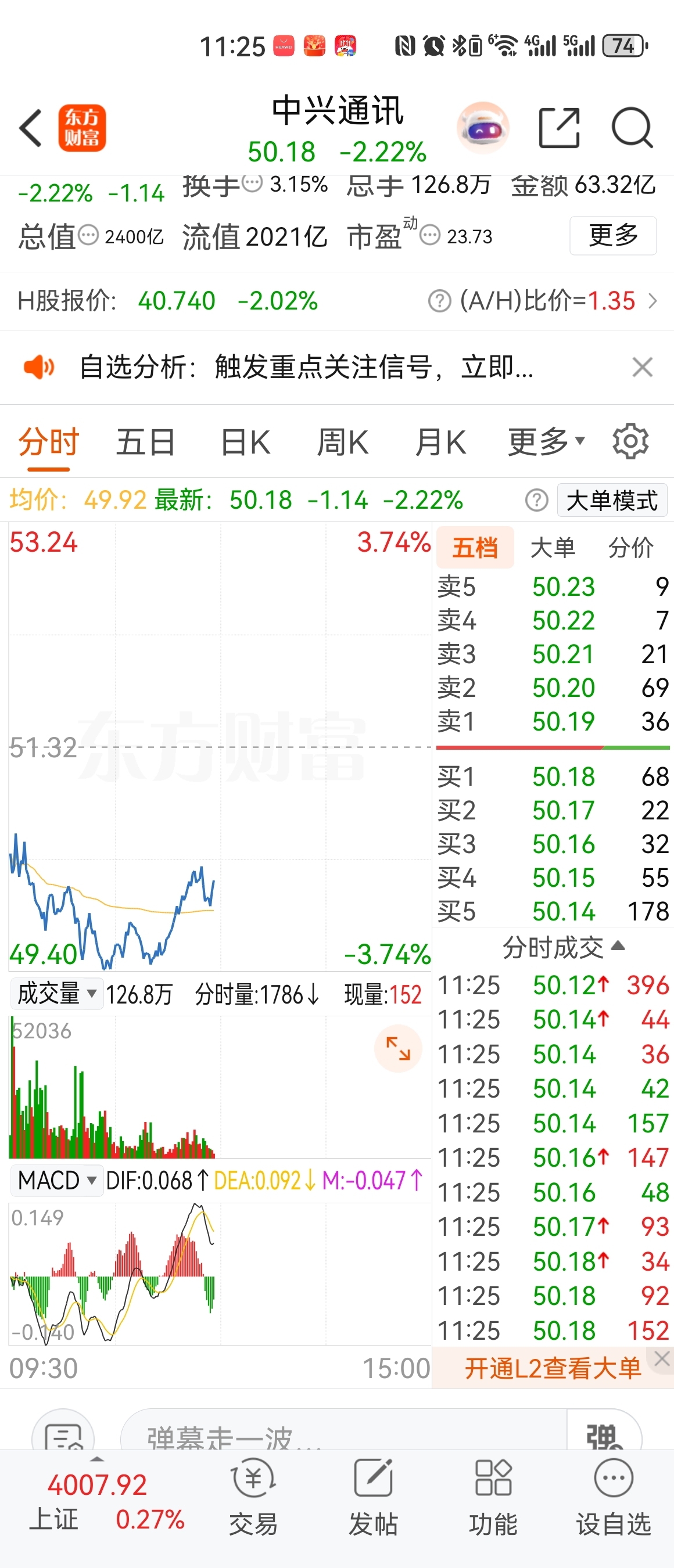 $中兴通讯(SZ000063)$ 又这个鸟样,我们散户来拉停