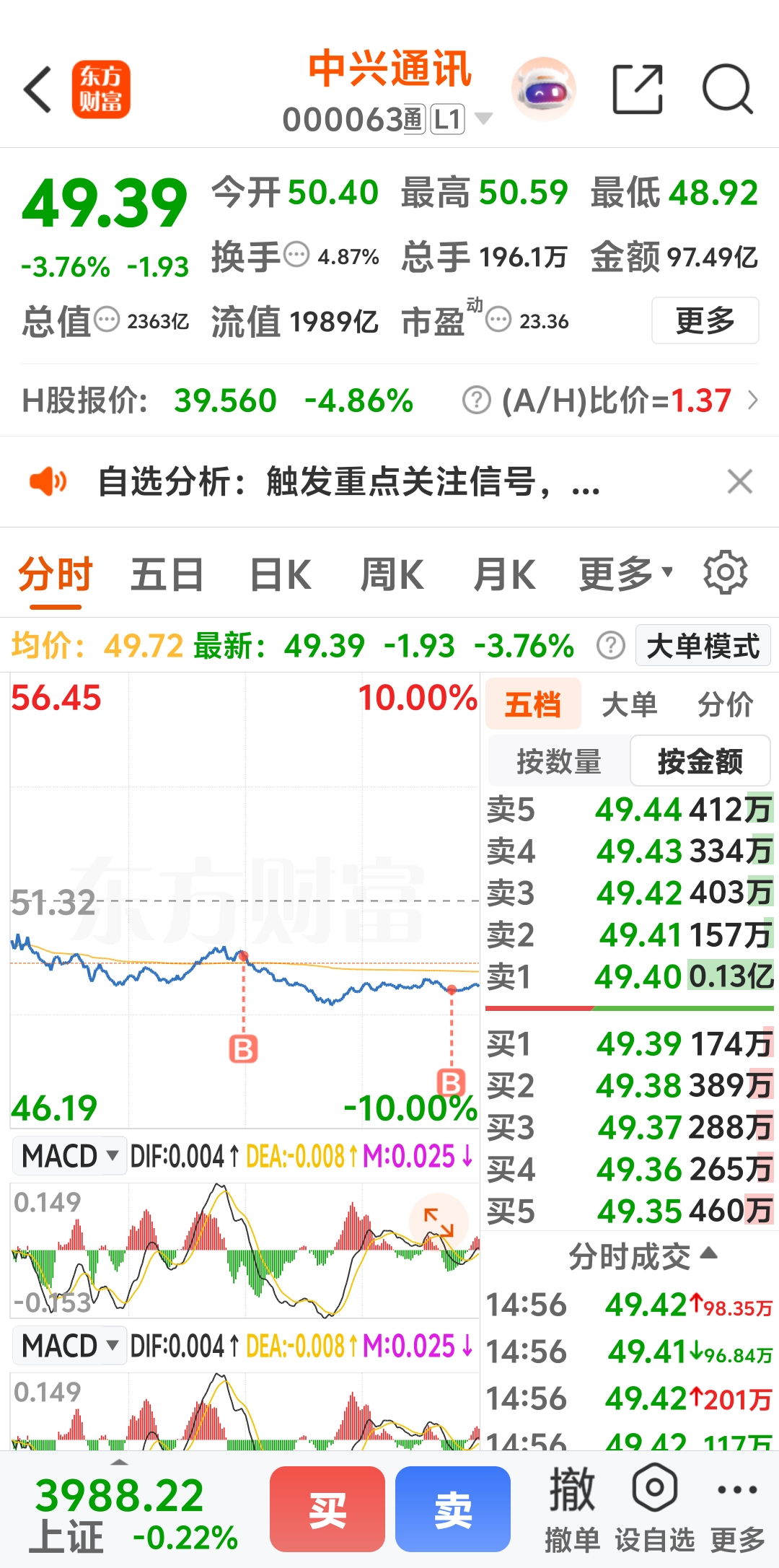 $中兴通讯(SZ000063)$ 进来就挨揍啊