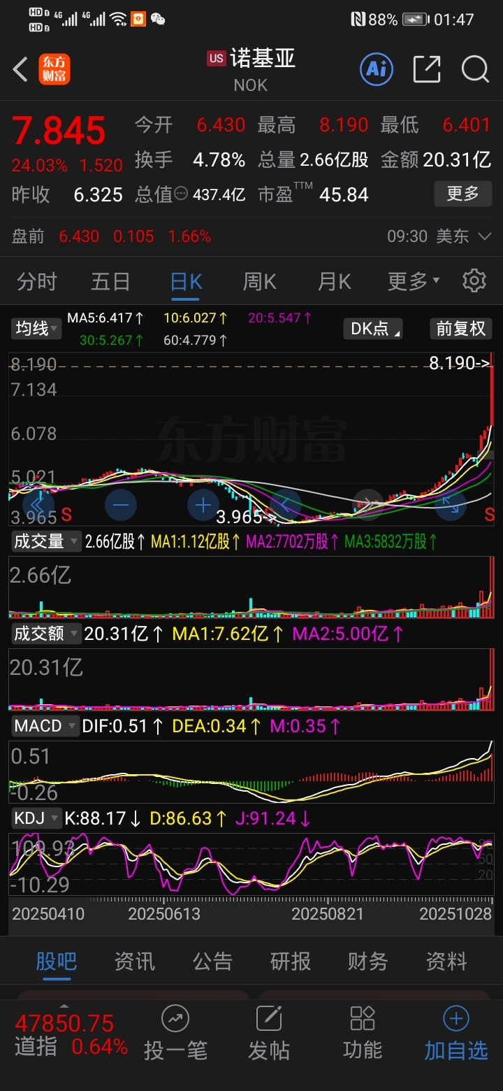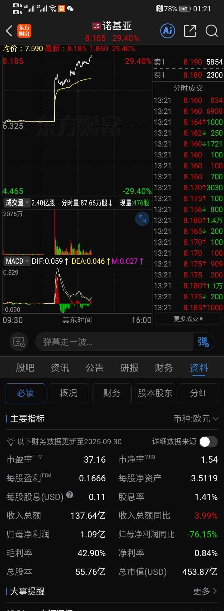 $中兴通讯(SZ000063)$ 诺基亚三季报利润同比下降75%,一样大涨