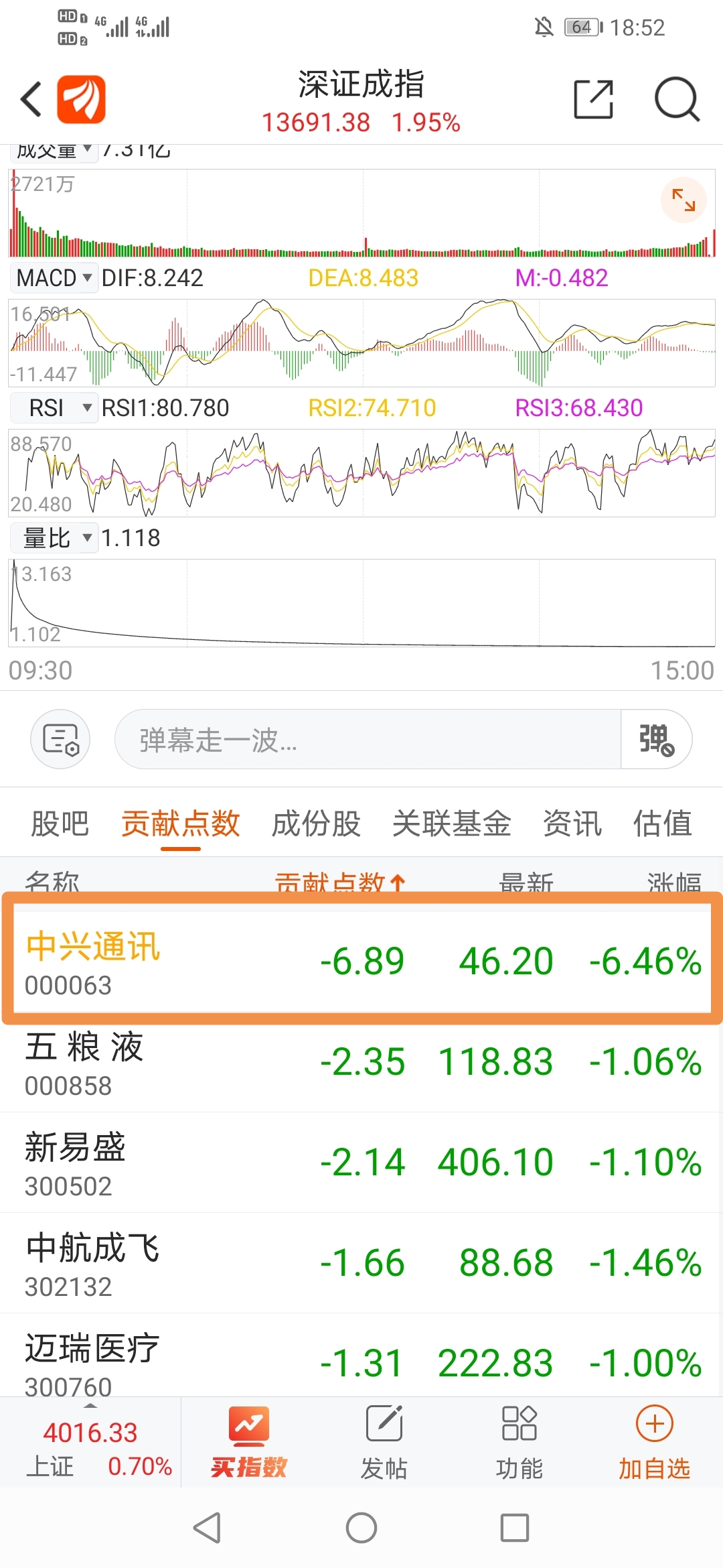 今天深证指数负贡献最多的就是这个飞舞,可以啊你