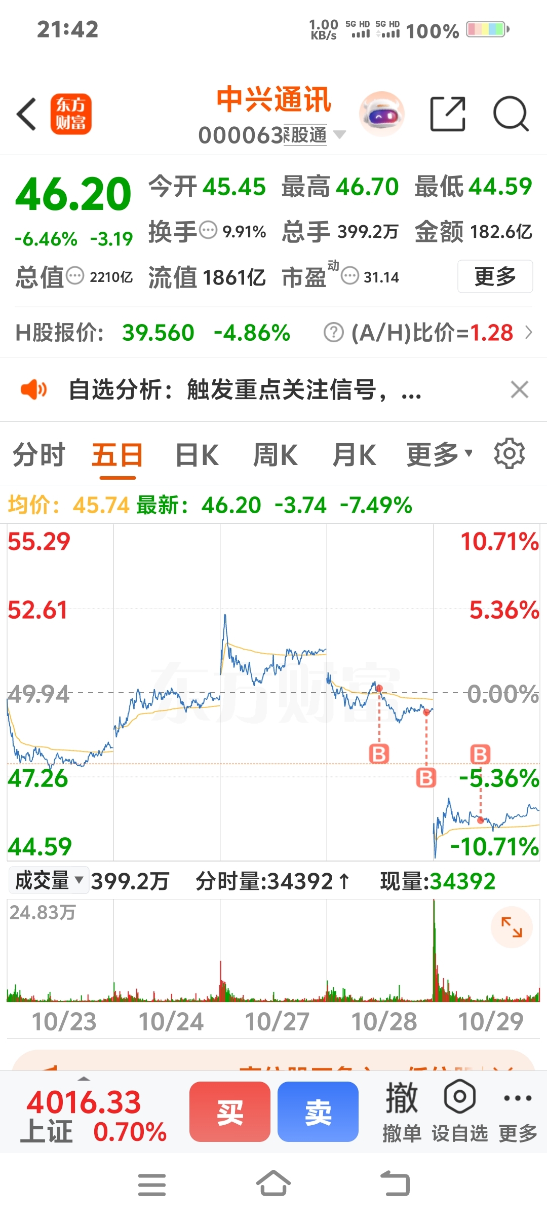 $中兴通讯(SZ000063)$ 昨天买的,啥时候解套呢?