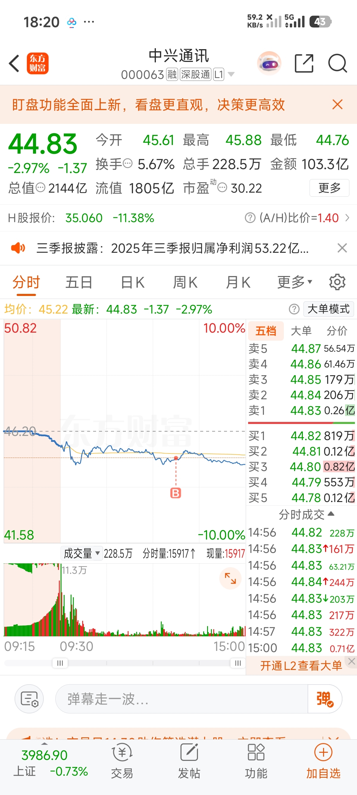 $中兴通讯(SZ000063)$ 明天高开涨停。原因如下:一是三季报过分下杀,远超出合理下跌空间;二是在宁夏中标九个亿;三是中兴是深圳国资委重点扶持的企业,2027年市值万亿以上,今天恐慌盘也基本吸走,主力不会放弃这个廉价筹码的机会。