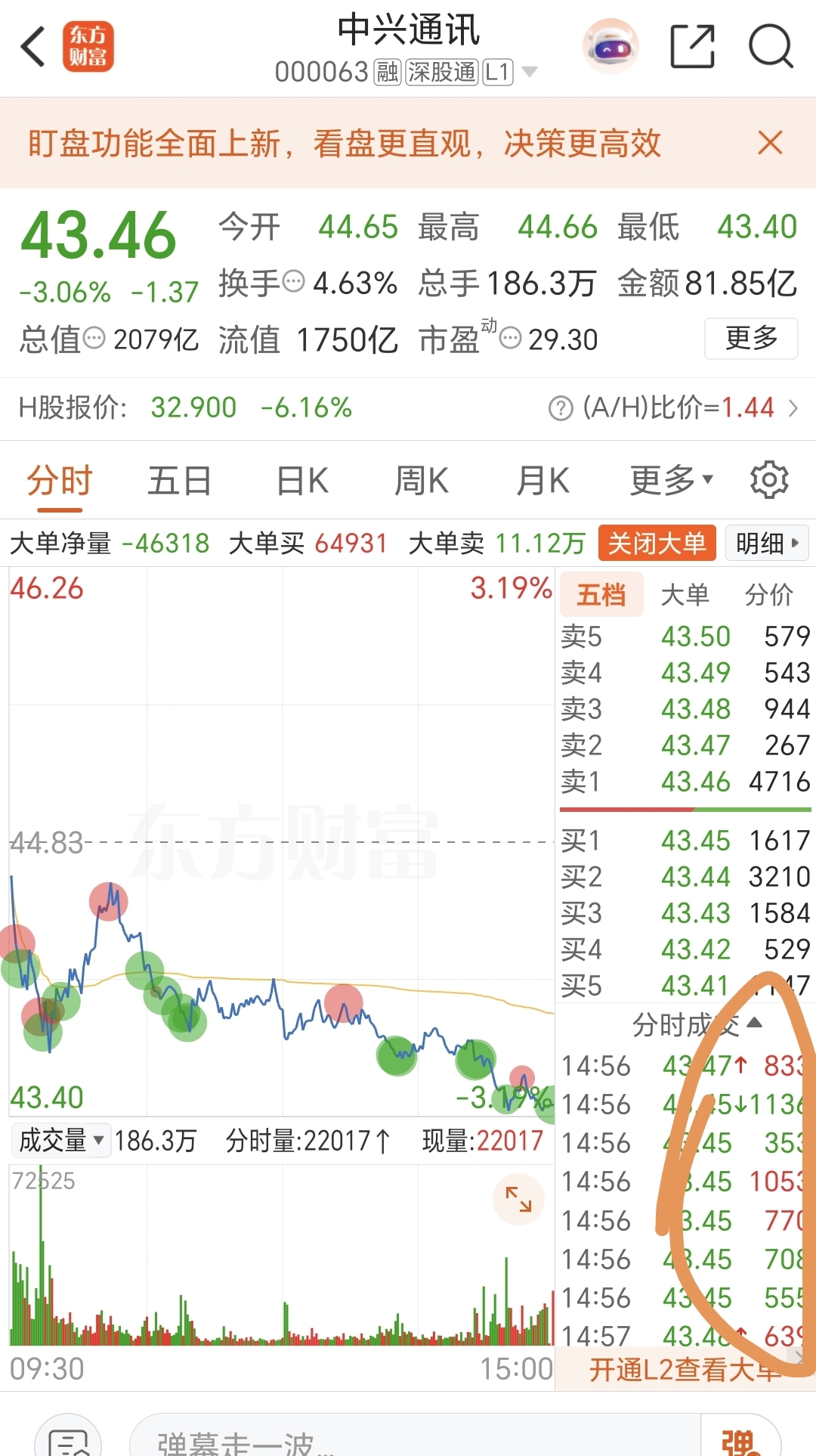 $中兴通讯(SZ000063)$ 边砸边吸,从千万大单看,红单为买,绿单为卖,已经有买单逐步低吸,在周五尾盘在卖的同时还有上千万的大单在低吸。卖单逐步衰竭,抄底哥认为:下周一开始反弹,个人观点,仅供参考