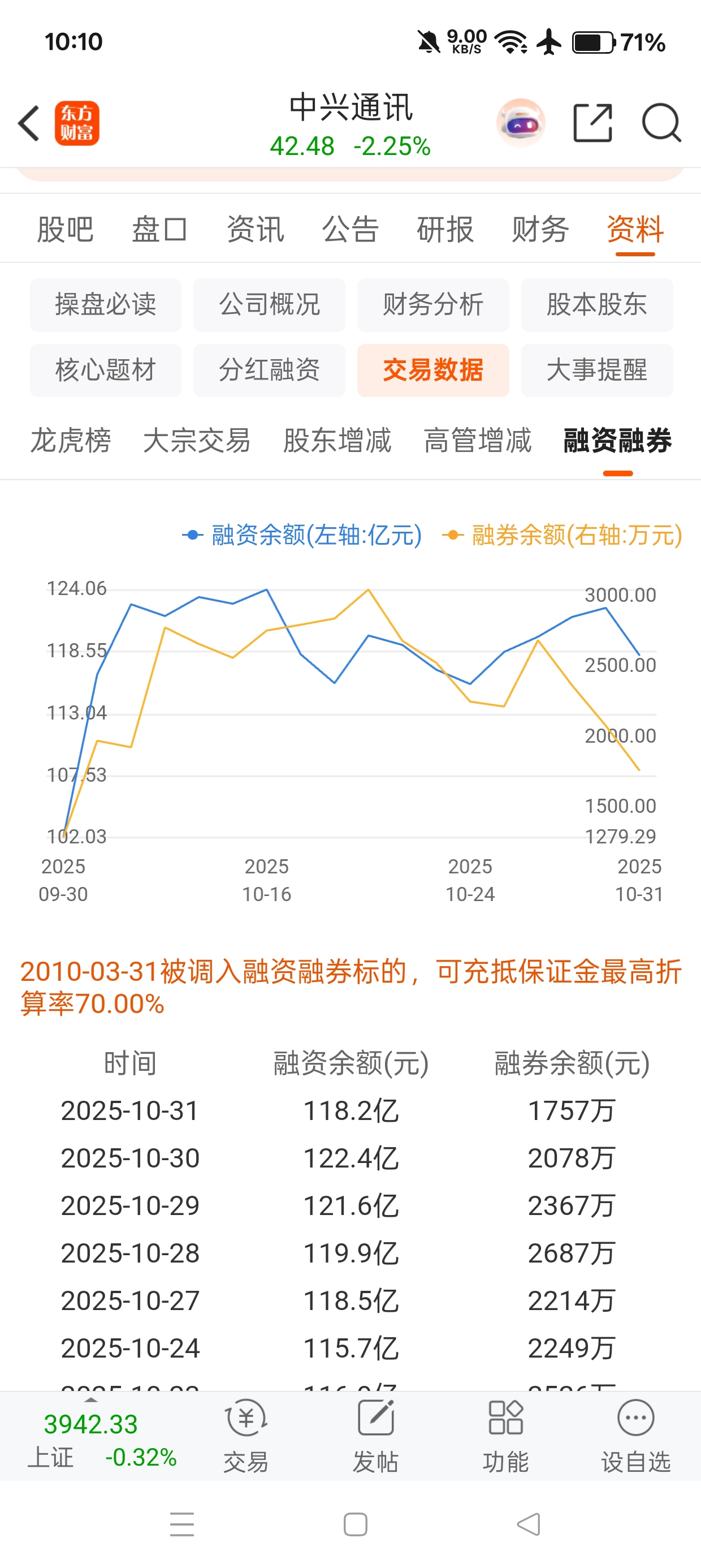 $中兴通讯(SZ000063)$  融资盘开始踩踏了,上周五跑了4个亿融资盘,今天会跑多少个亿的融资盘?