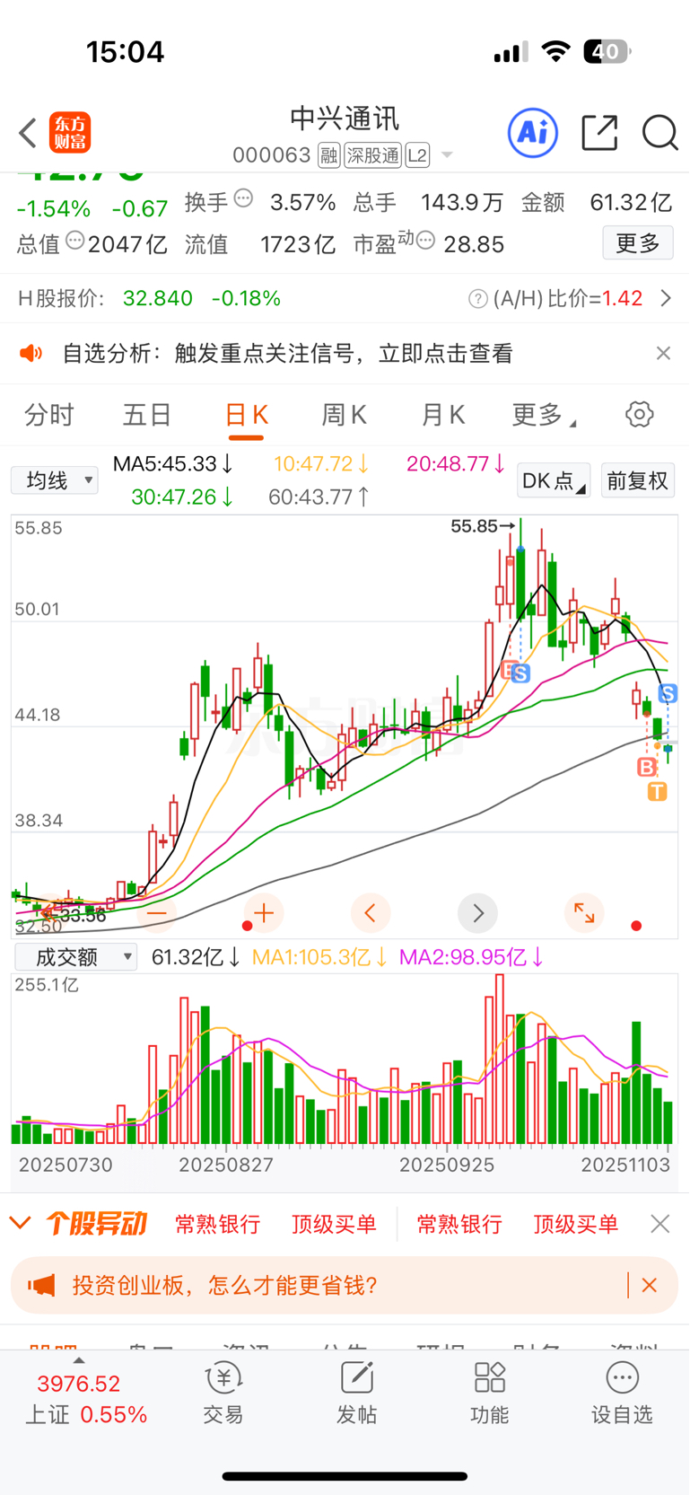 $中兴通讯(SZ000063)$ 早上割肉止损,等企稳再入