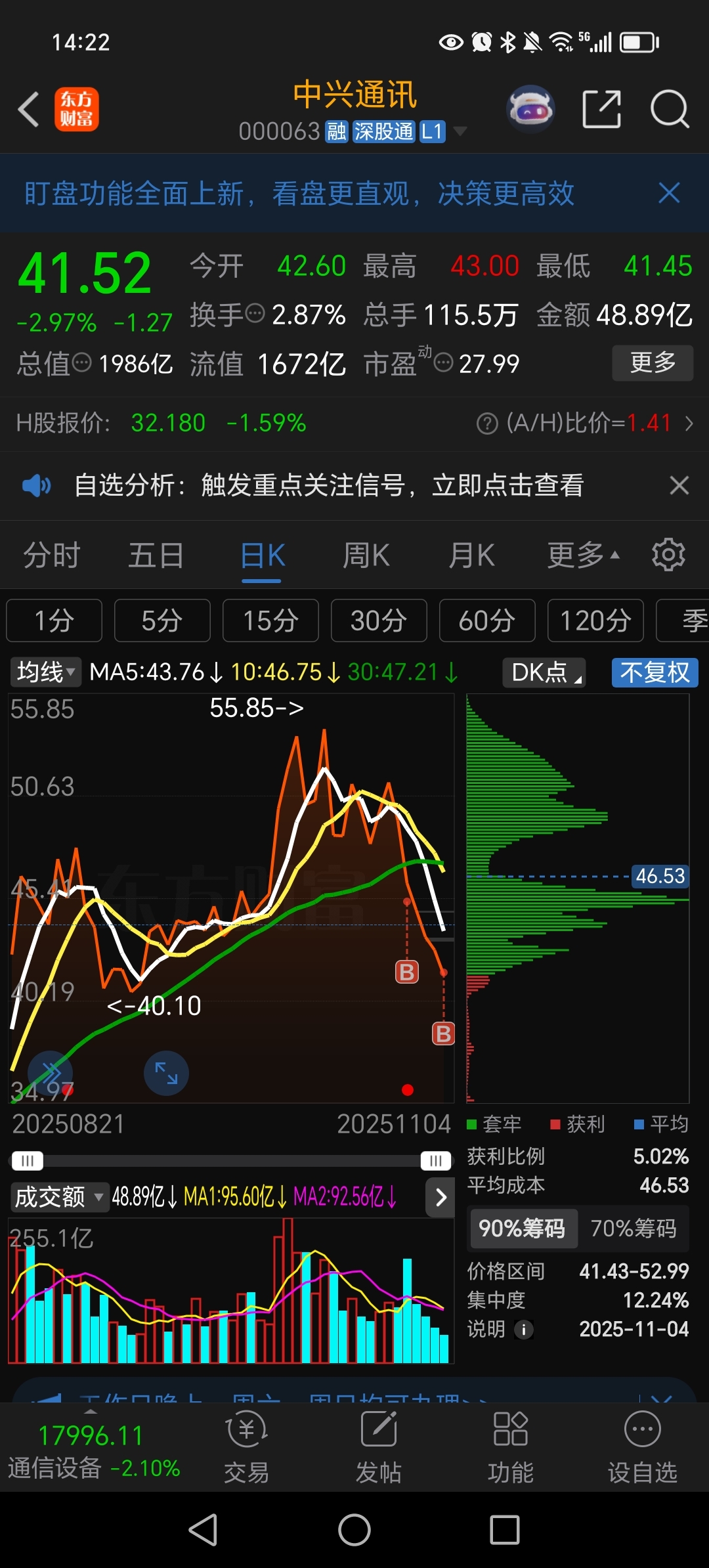 $中兴通讯(SZ000063)$ 以为抄底,被庄家反抄家