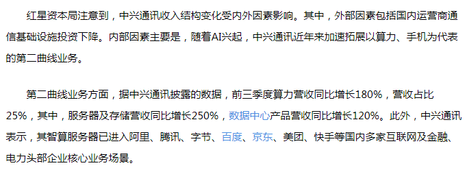 今天早盘其实有反攻的动作,量能也很配合,无奈大盘不给力,两次反攻都被拉下水。既然有了反攻的意识,就不妨相信中兴的价有其值所在,不到30倍的市盈率,在科技大牛市的前提下,估值是比较合理的。三季报虽然净利润下降厉害,这是转型期的阵痛,亮点在于其算力增速非常快,修复可期!