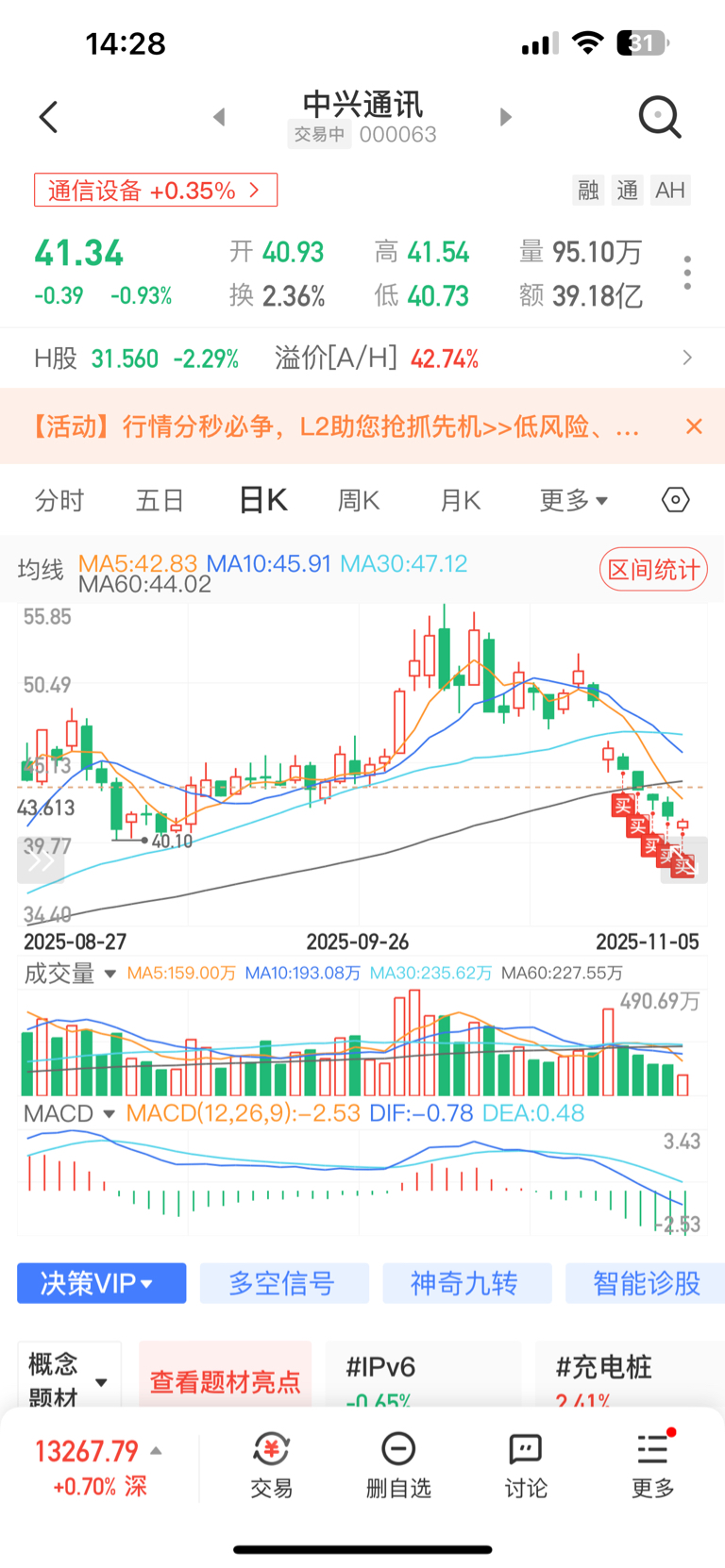$中兴通讯(SZ000063)$ 100万分批入场,年底翻倍