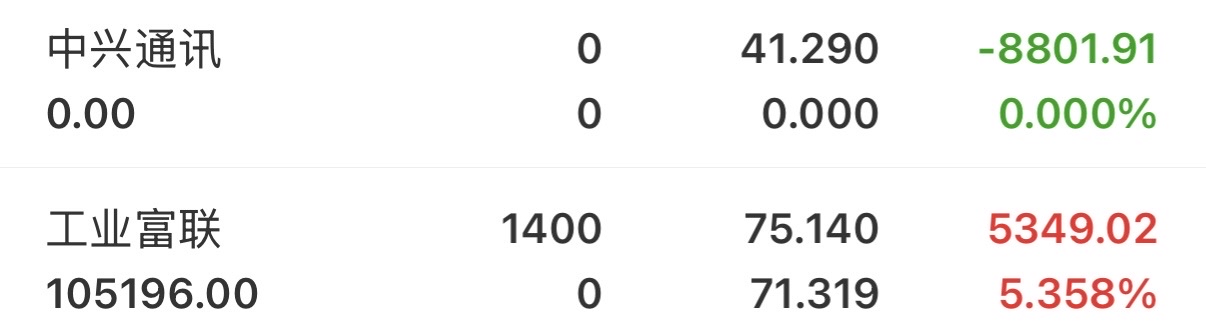 $中兴通讯(SZ000063)$ 在你这因为业绩达不到预期亏了2w,拿不住了走了,换富联