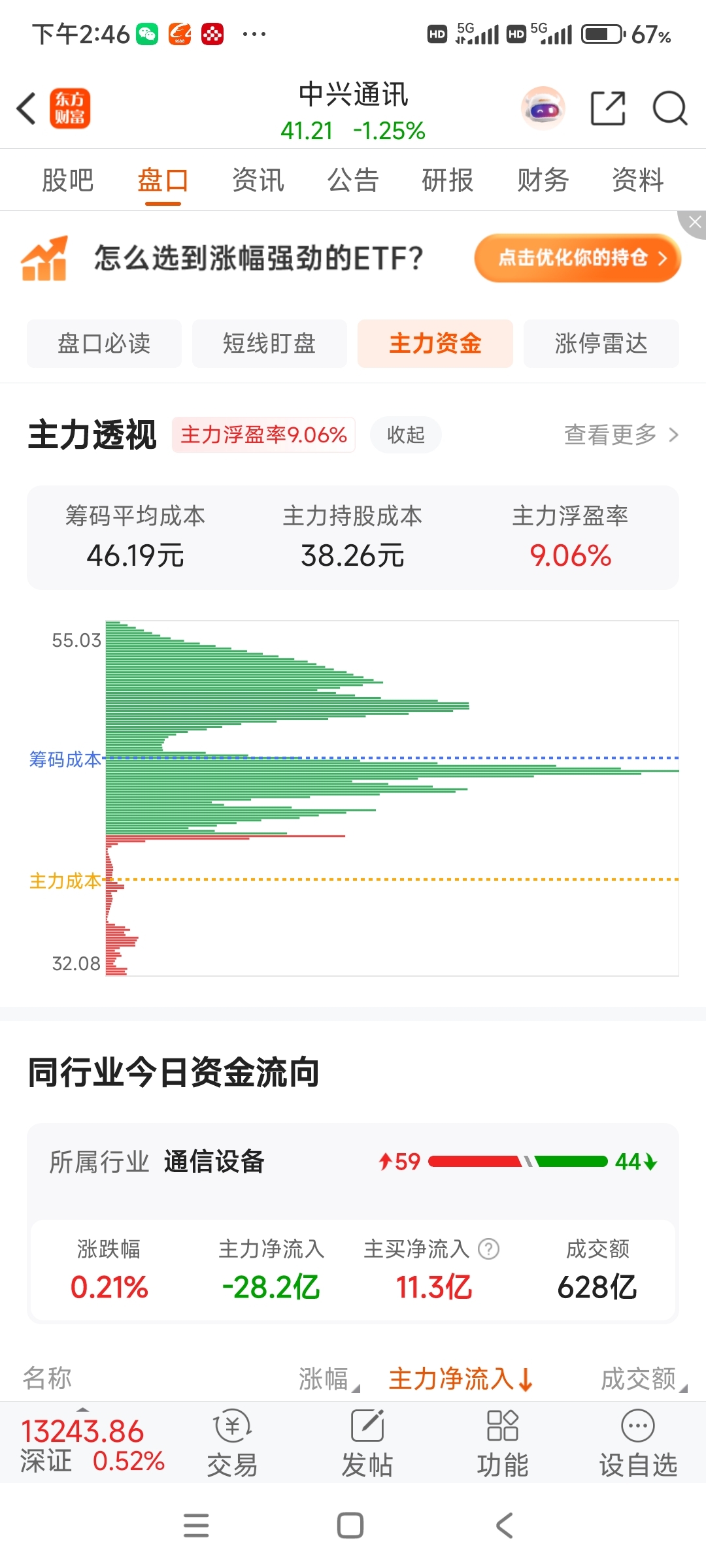 $中兴通讯(SZ000063)$ 主力还盈利9个点还有的跌