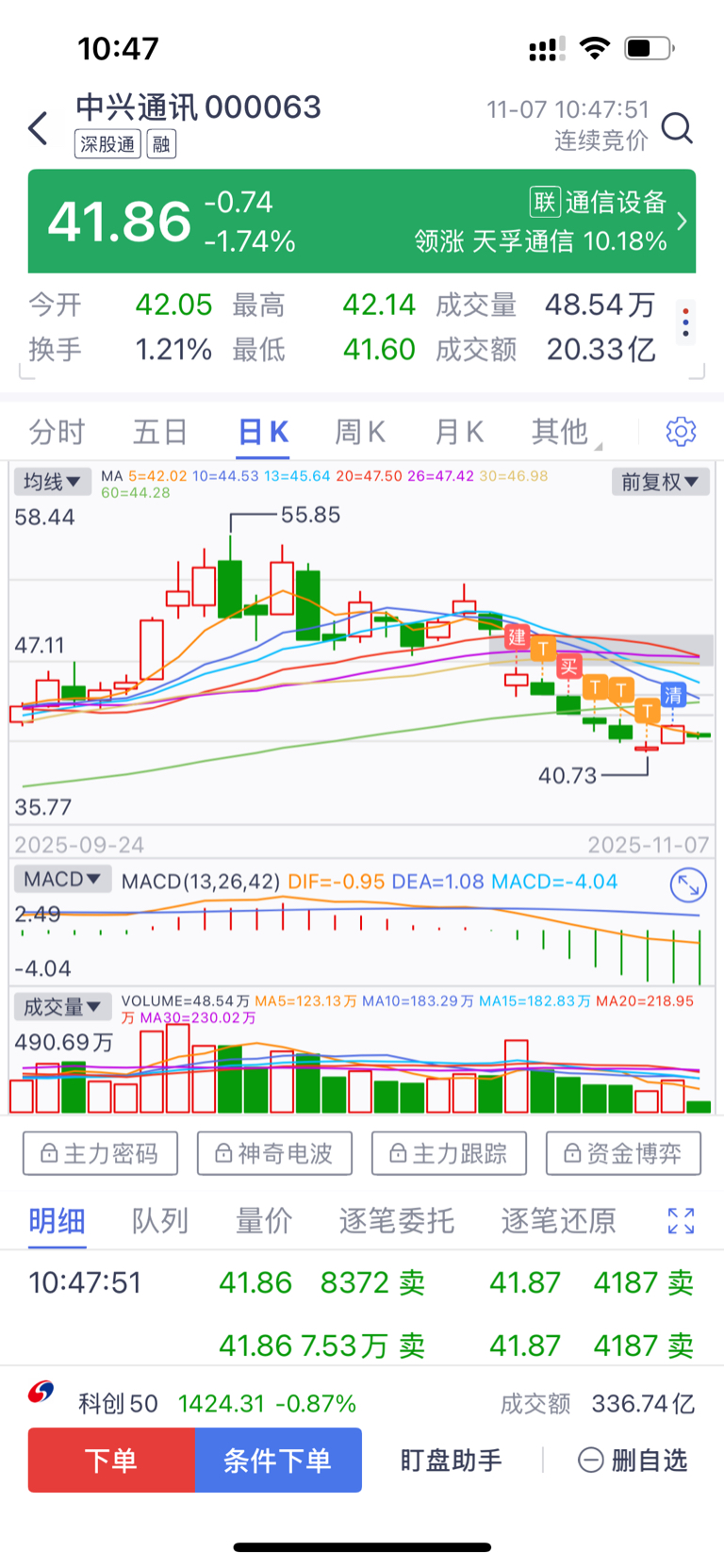 $中兴通讯(SZ000063)$ 这货跟猪翔没什么区别,一个星期加杠杆到320个,昨天亏18000跑路的,早上41.65又接你回来T