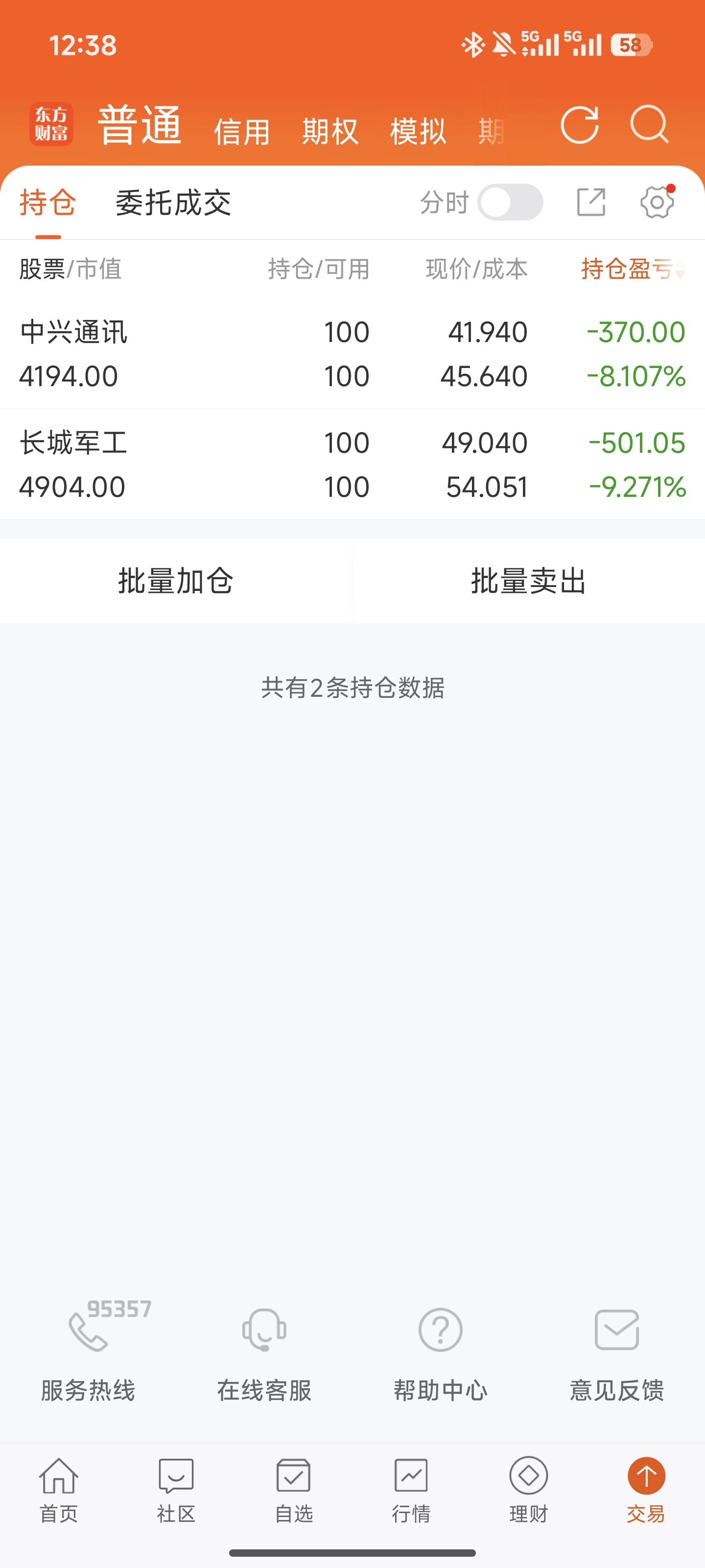 #股市怎么看# 要不要割肉止损$中兴通讯(SZ000063)$ $长城军工(SH601606)$