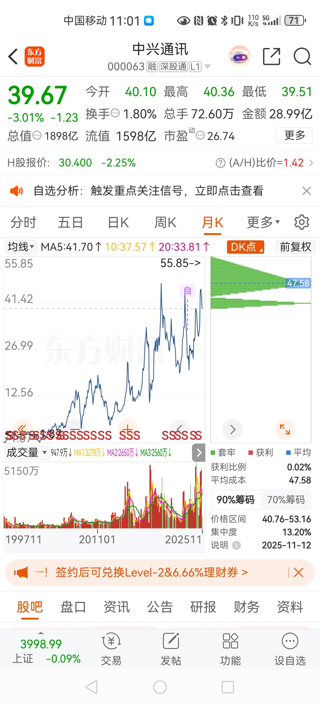 $中兴通讯(SZ000063)$ 月线来看是在高位