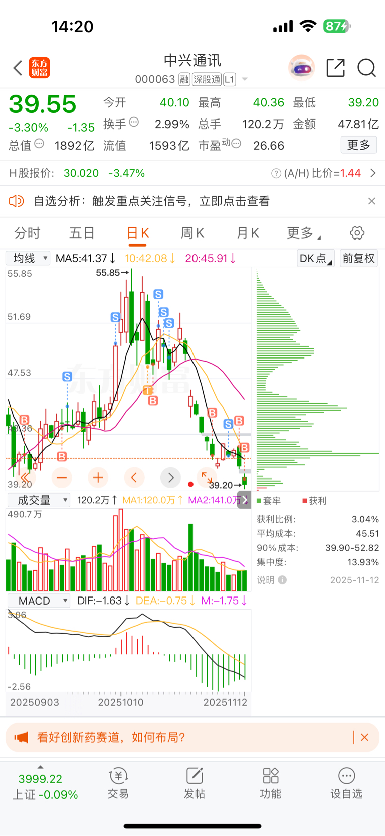 $中兴通讯(SZ000063)$ 真是一泻千里啊,还以为40是个支撑点,看来不到32是止不住了。