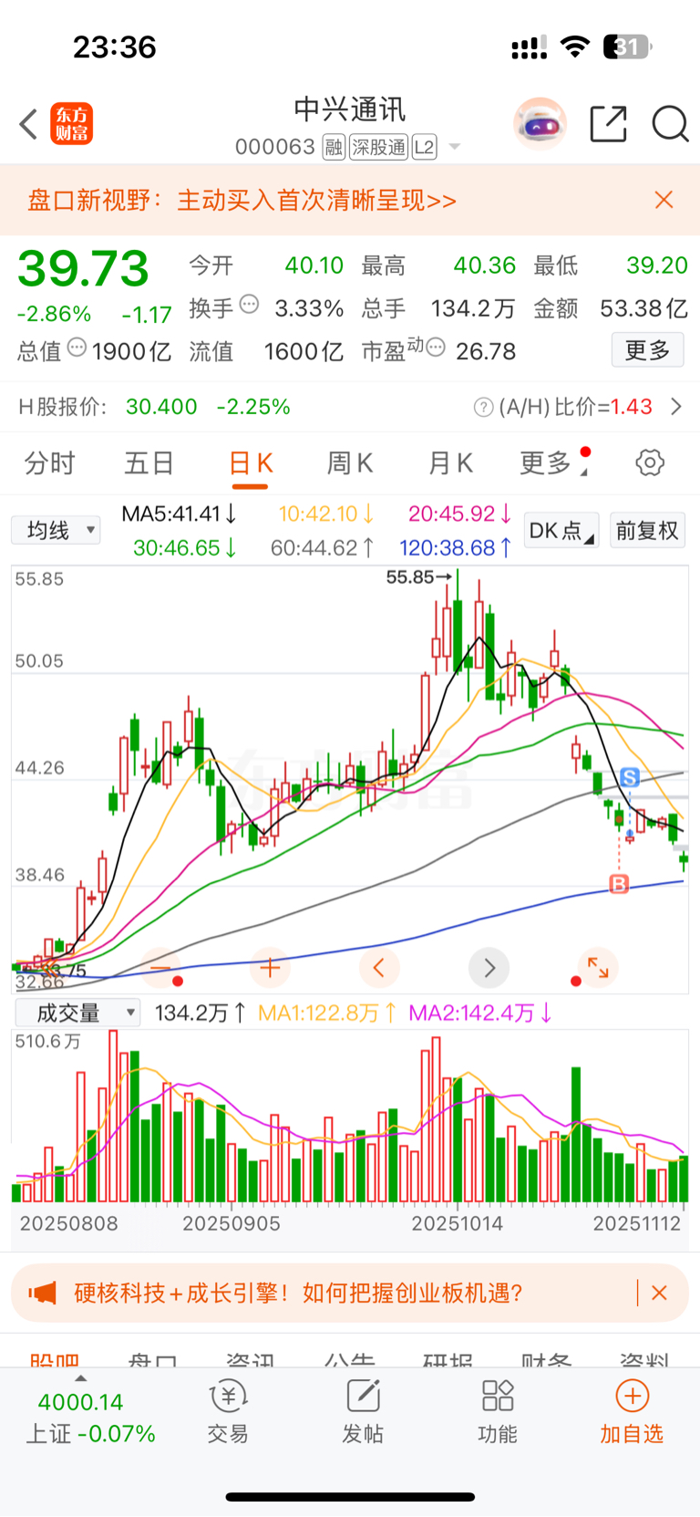 $中兴通讯(SZ000063)$ 阴跌真可怕