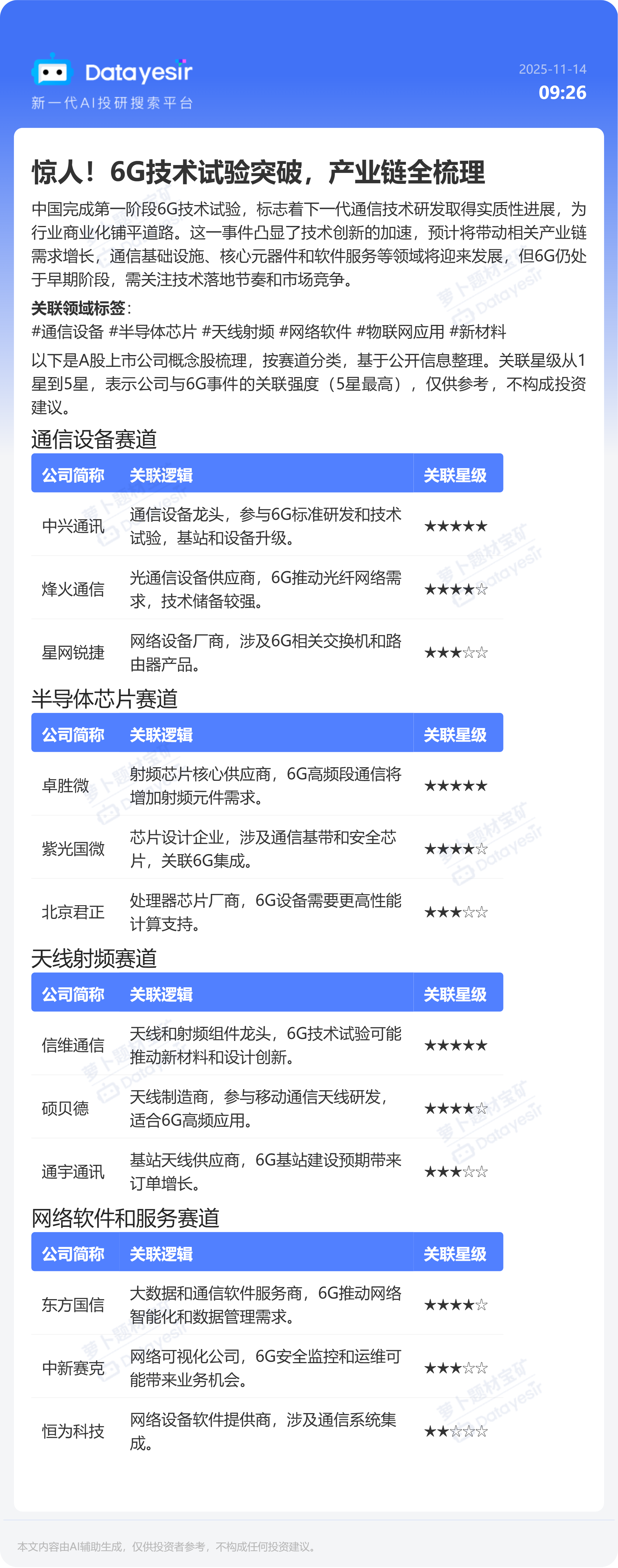 惊人!6G技术试验突破,产业链全梳理