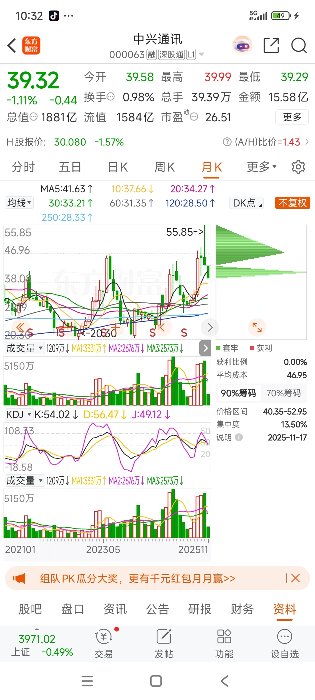 $中兴通讯(SZ000063)$ 获利比率为0,为什么还在跌?