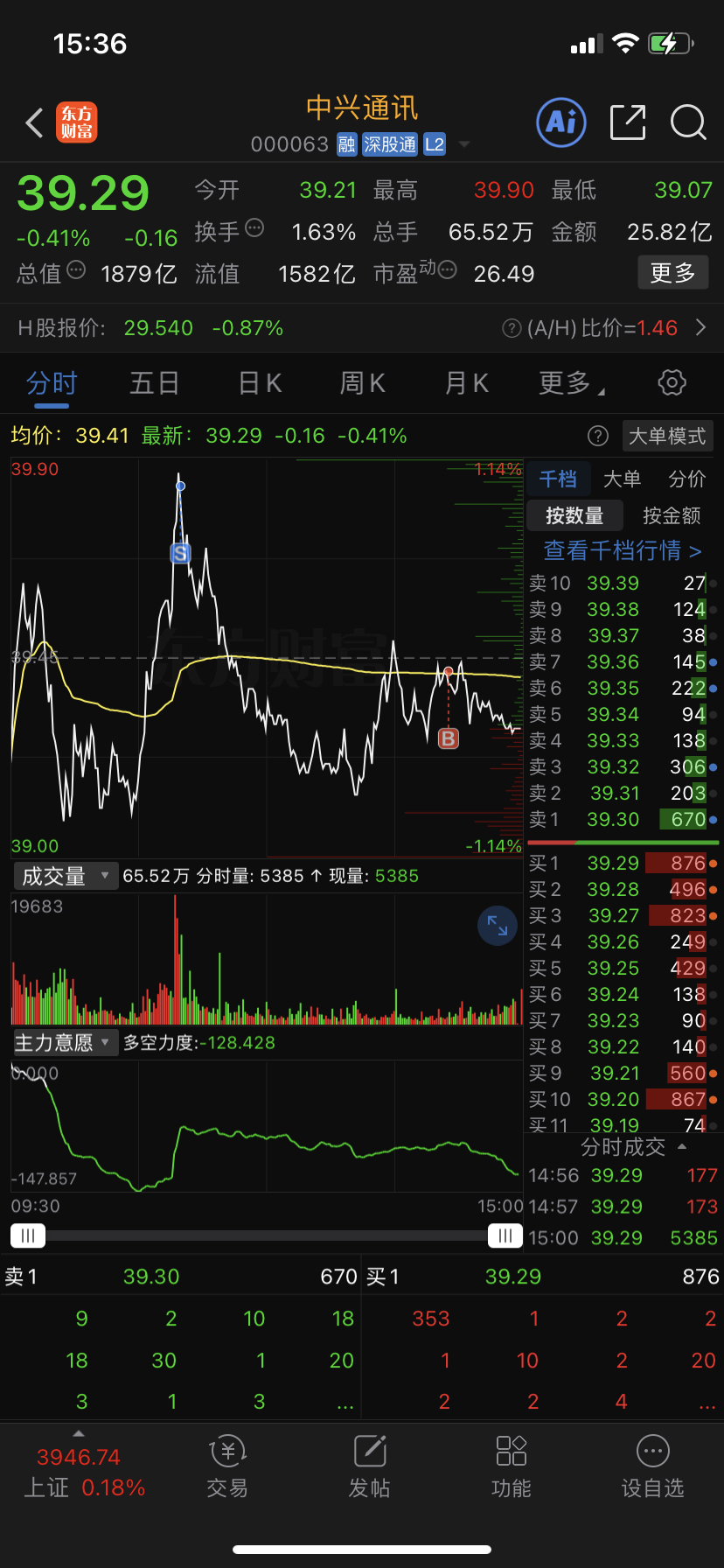 $中兴通讯(SZ000063)$ 对主力