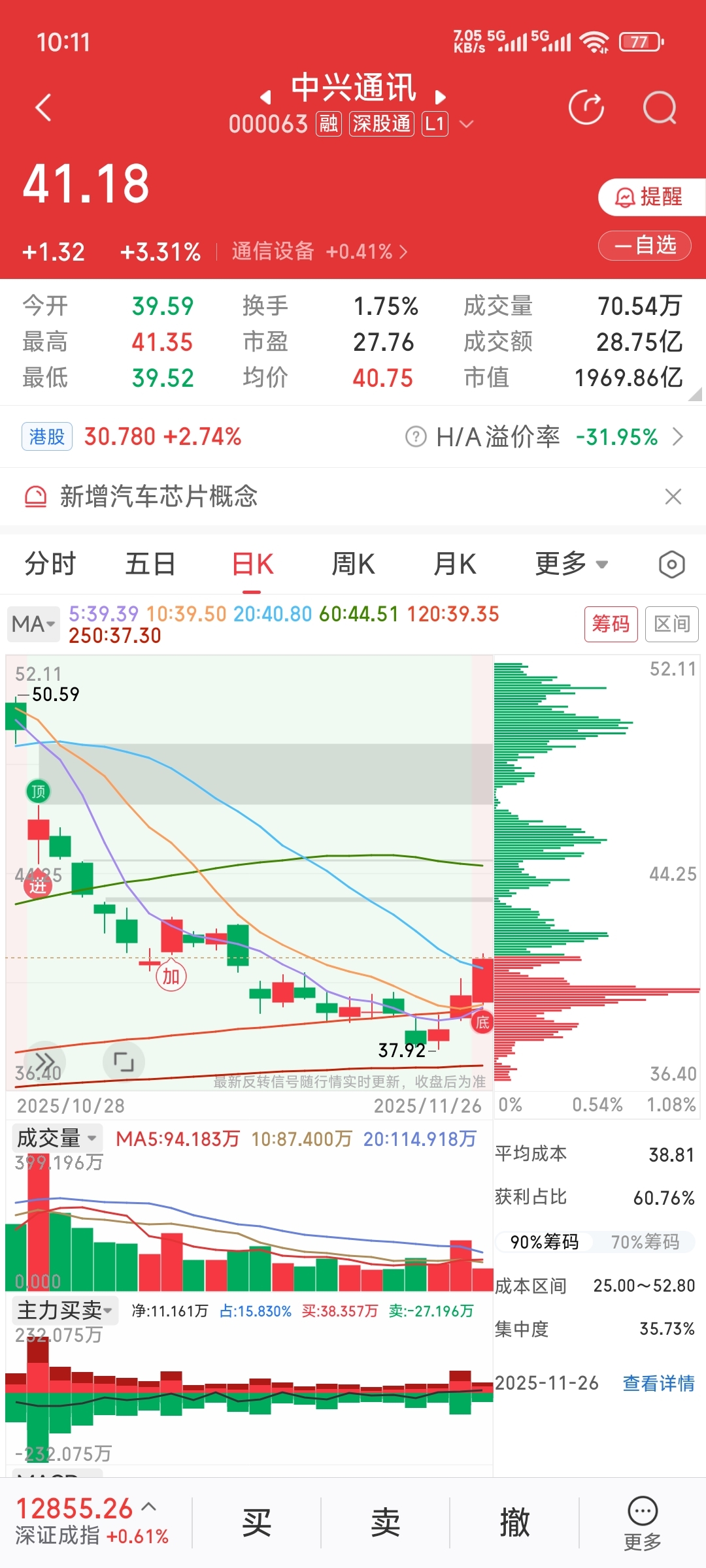 $中兴通讯(SZ000063)$ 缩量上涨怎么说?