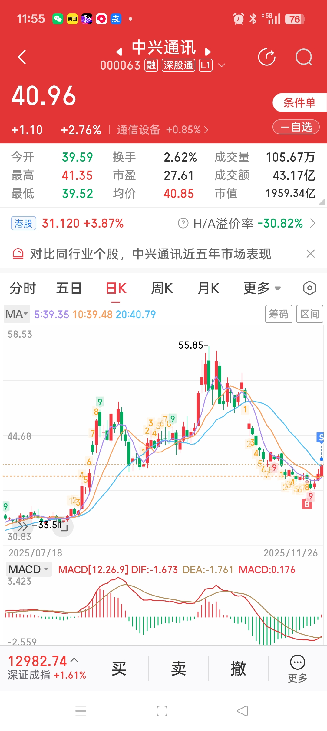 $中兴通讯(SZ000063)$ 搞了5个点走了
