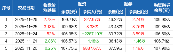 中兴通讯:融资净买入327.97万元,融资余额109.71亿元(11-26)