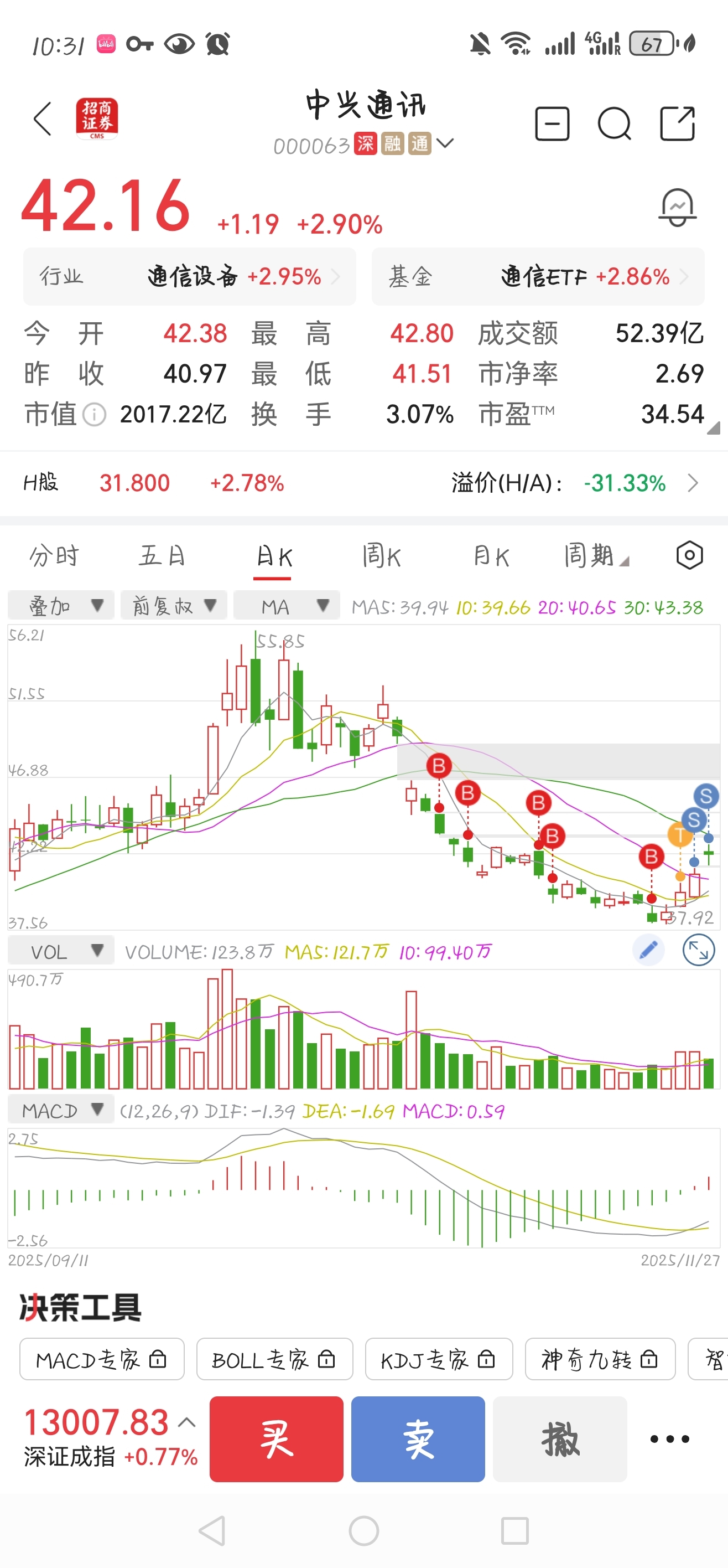 $中兴通讯(SZ000063)$ 其实静下心来看,11月大部分人是亏损,如果能坚守中兴通讯,其实在周五就规避了一次大跌,然后这周还帮你扭亏为盈,那么这个股票就是远远跑赢大盘的一个好股票,今天清仓了,后续收益不是我能力圈应该赚的钱了#复盘记录#