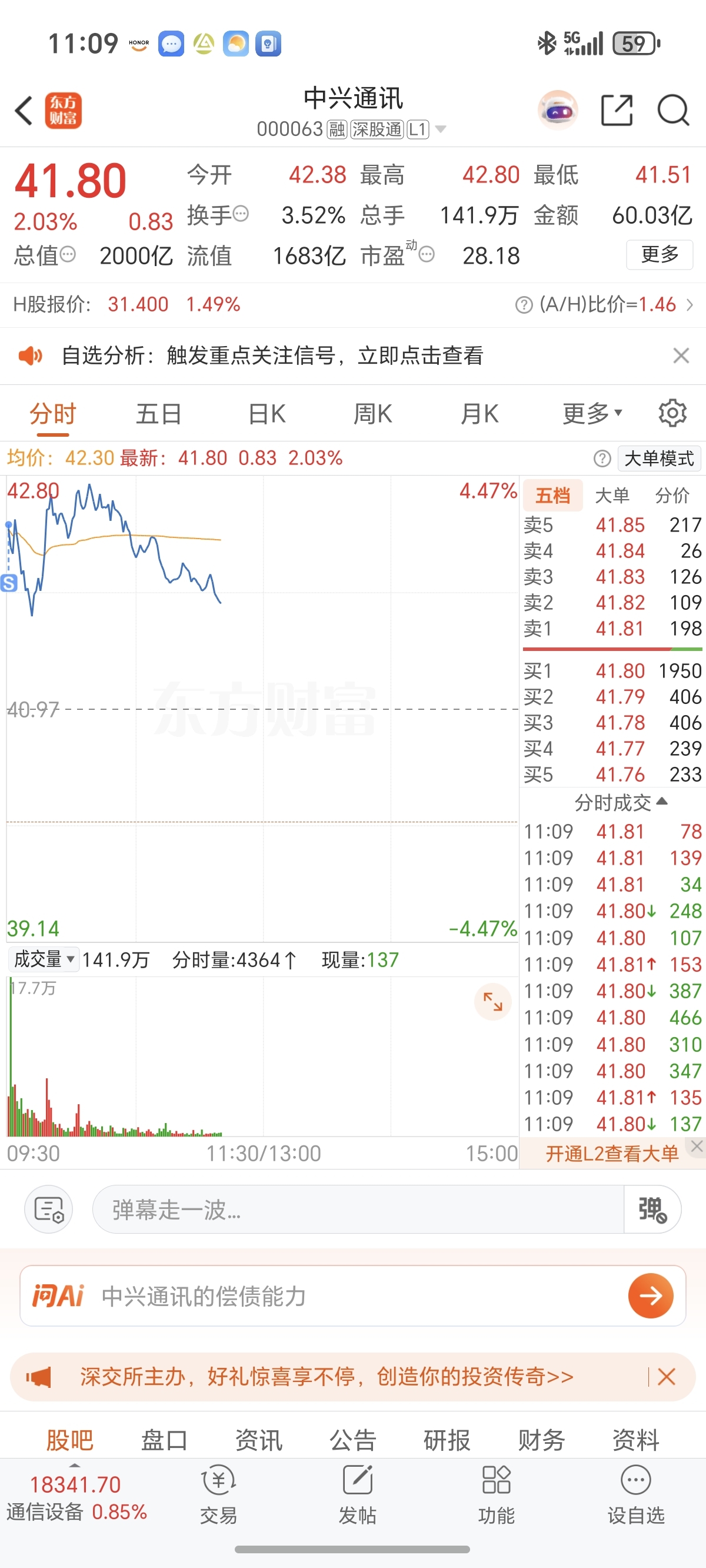 $中兴通讯(SZ000063)$ 妈妈说袋袋平安