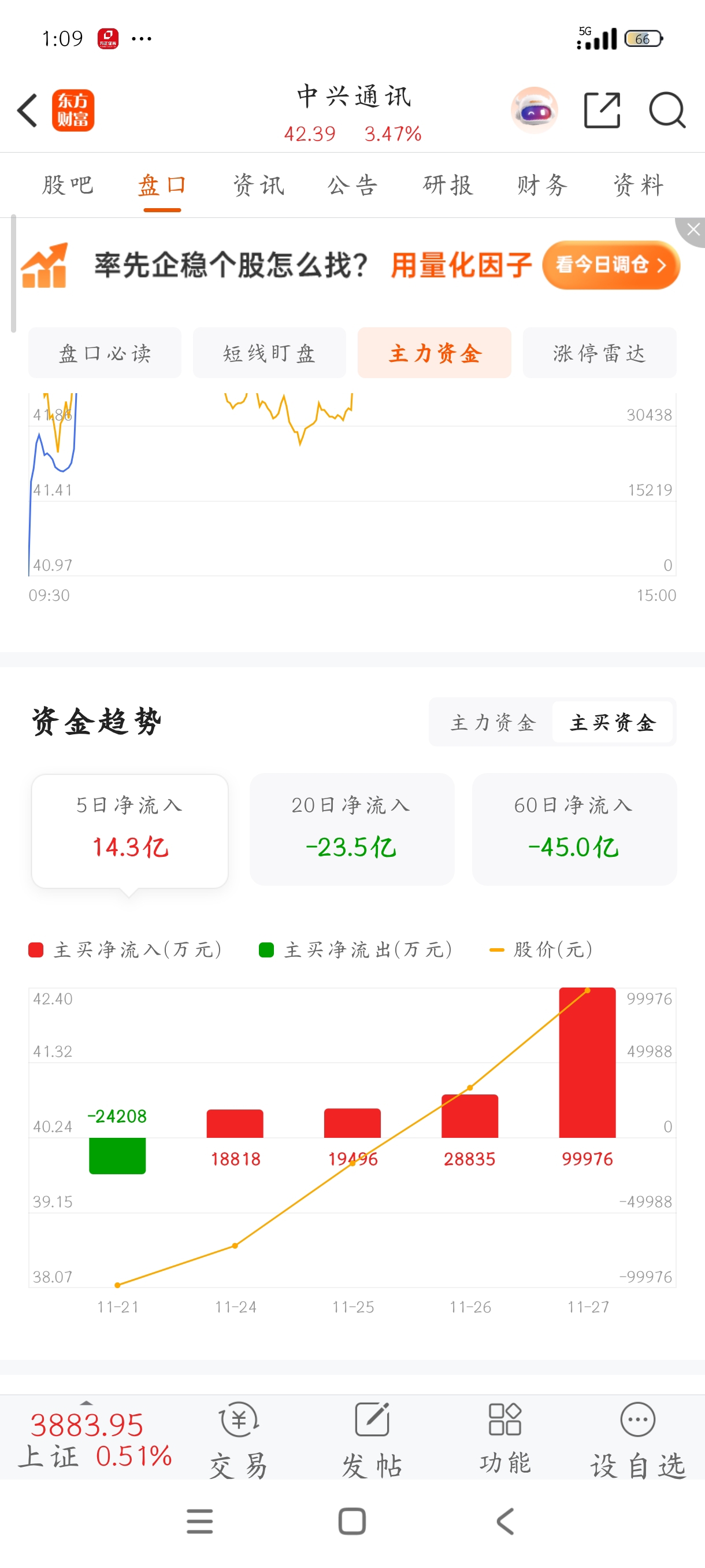 $中兴通讯(SZ000063)$ 流入十个亿,持股待涨