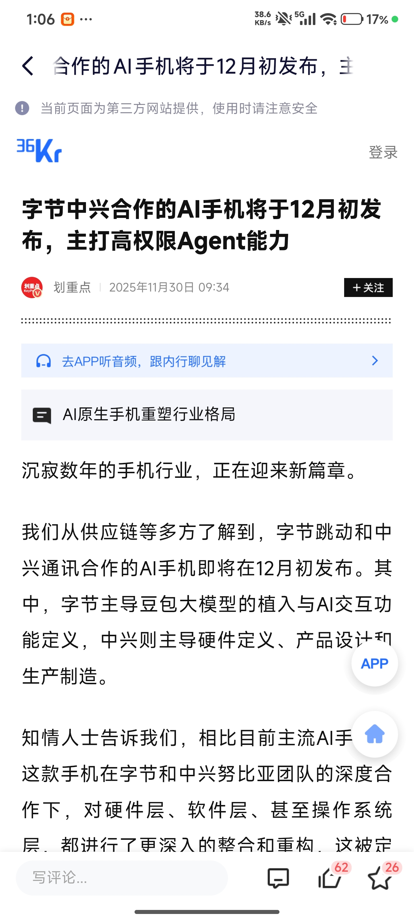 $中兴通讯(SZ000063)$ 关于ai手机的本次传闻 大概率是真的