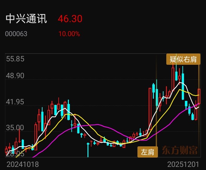 $中兴通讯(SZ000063)$ 疑似右肩顶,明天不宜接盘!
